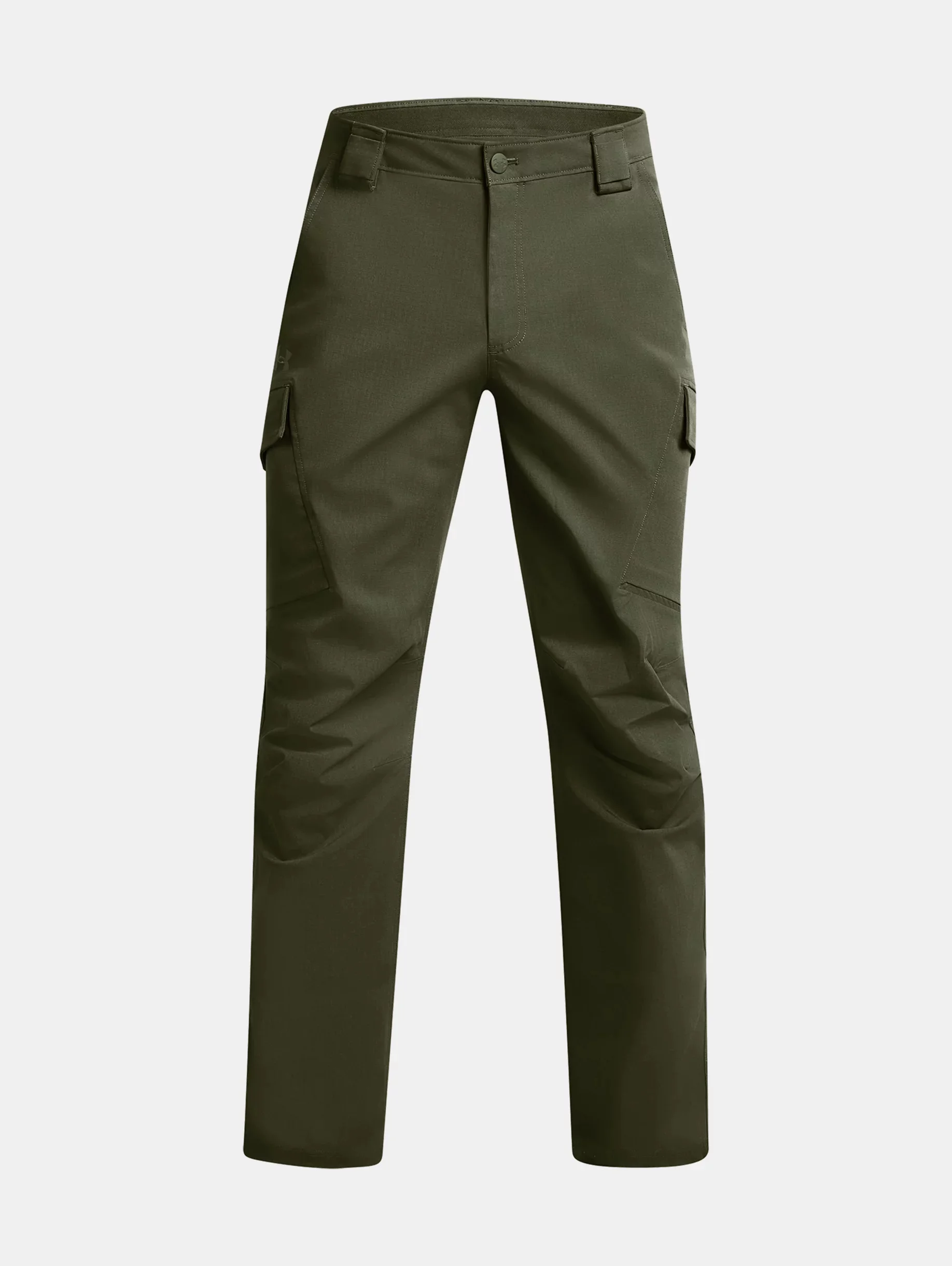 What's it do? These pants give you all the stretchy, lightweight athletic performance you expect from UA, plus all the durability you need for the job. Product DNA - UA Storm technology repels water without sacrificing breathability - Ultra-durable, ripstop stretch-woven fabric is tough enough to put up with anything in the field - Super-comfortable waistband stretches with you as you move - Articulation built into the knees for added mobility - Built-in badge clip on front belt loops - Open hand pockets with interior knife pocket & secure, zip back pockets - Secure, flap closure cargo pockets - Uses a fluorine-free water repellent treatment - Loose: Fuller cut for complete comfort. - Style #: 1386717 - Pockets: Yes - 100% Polyester - Imported