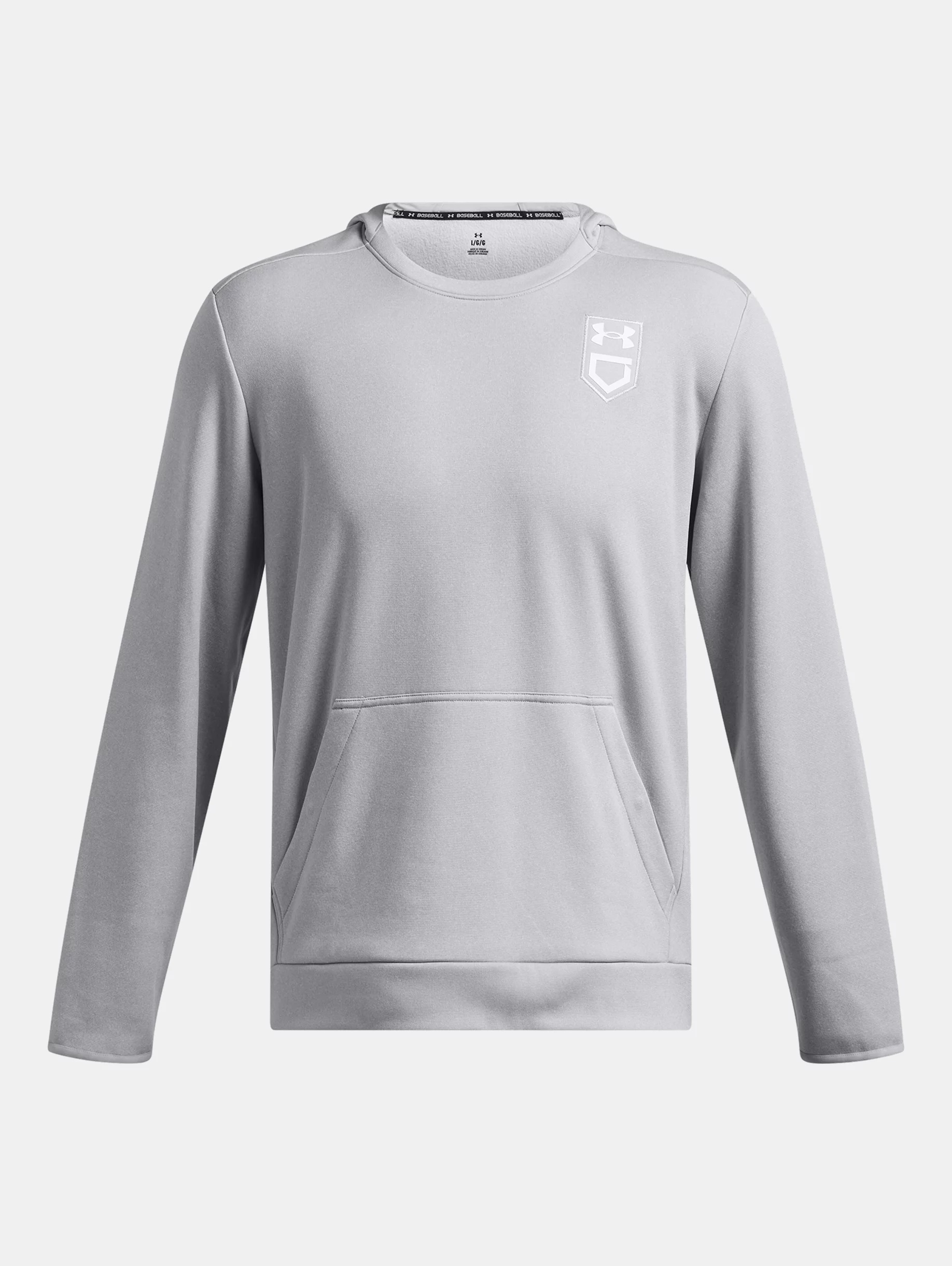 What's it do? Armour Fleece® is our original performance replacement for old-school fleece. It's light, incredibly warm, and has just the right amount of stretch. Product DNA - Armour Fleece® is light, breathable & stretchy for warmth that still lets you move - Soft inner layer traps heat to keep you warm & comfortable - Zero-distraction hood design with no drawstring gives you full peripheral vision - Room in shoulders & chest for comfort while wearing over a jersey - Tighter forearms stay put while batting & playing catch & shortened cuffs for comfort with batting gloves - Front kangaroo pocket with snap closure - Main body fabric contains at least 90% recycled polyester, excluding trims & embellishments - Loose: Fuller cut for complete comfort. - Style #: 1386951 - 100% Polyester - Imported