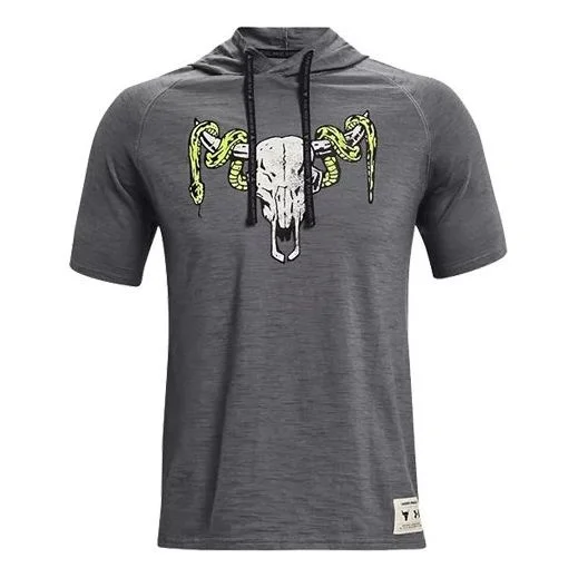 Men's Under Armour Project Rock Casual Sports hooded Short Sleeve Gray 1361719-012