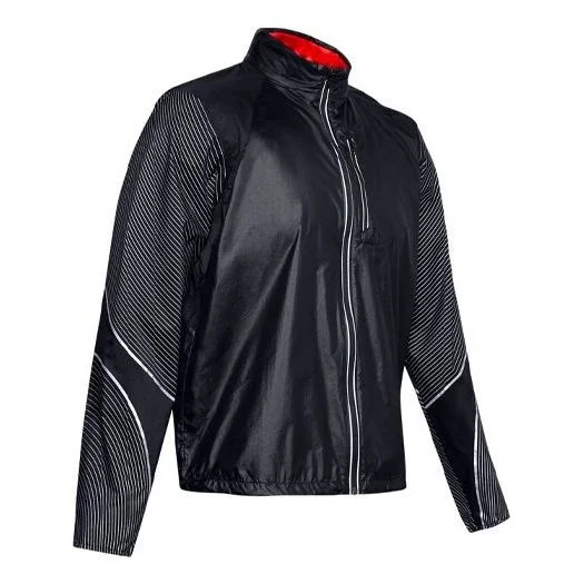 Men's Under Armour Run Impasse Reflect Stripe Pattern Stand Collar Long Sleeves Jacket Black 1350944