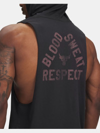Project Rock training gear was built to help you find boundaries, then push right through them.This sleeveless hoodie was personally approved by Dwayne Johnson, the hardest worker in the room. ANY room. Product Details - Super-soft, cotton-blend fabric provides all-day comfort - Front kangaroo pocket - Shaped hem for enhanced coverage - Generous dropped armholes for full range of motion - Main body fabric contains at least 40% recycled polyester, excluding trims & embellishments Size & Fit - Fuller cut for complete comfort. Space & Care - Style #: 6005049 - 60% Cotton/40% Polyester - Imported