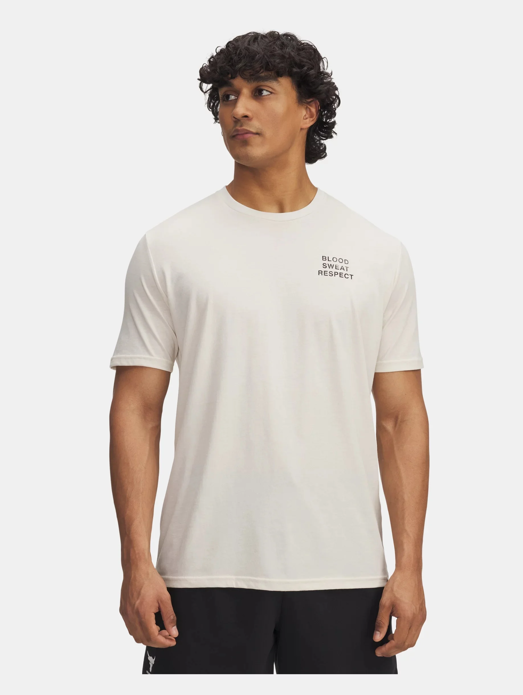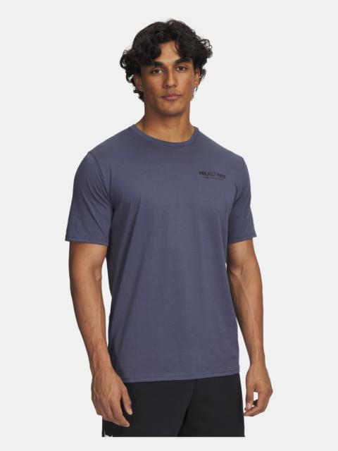 Project Rock training gear was built for the hardest workers in the room. This graphic T is comfortable, dries quick, and makes a statement. Product Details - Super-soft, cotton-blend fabric provides all-day comfort - Ribbed collar Size & Fit - Fuller cut for complete comfort. Space & Care - Style #: 6005027 - 60% Cotton/40% Polyester - Imported