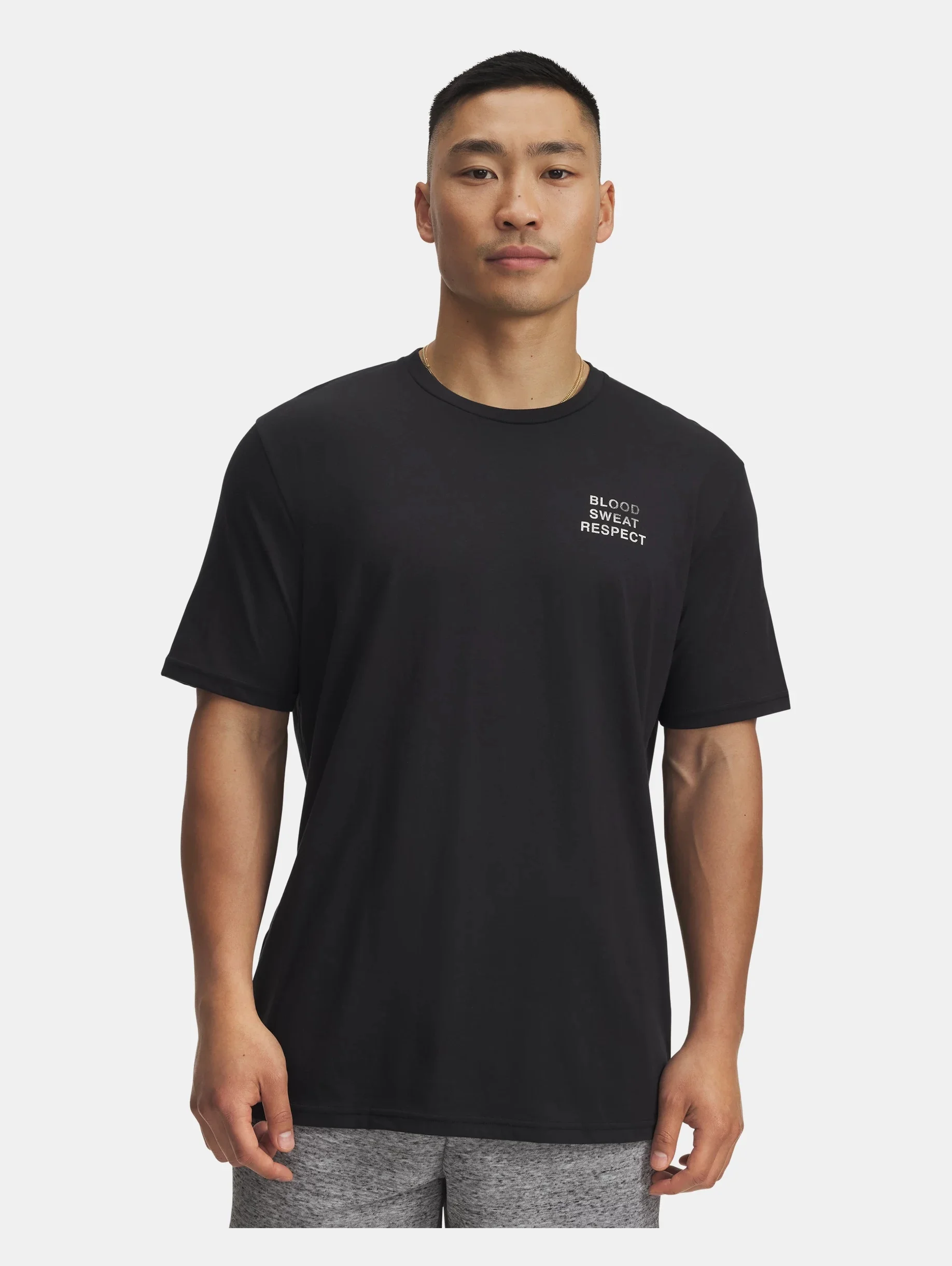 Project Rock training gear was built for the hardest workers in the room. This graphic T is comfortable, dries quick, and makes a statement. Product Details - Super-soft, cotton-blend fabric provides all-day comfort - Ribbed collar Size & Fit - Fuller cut for complete comfort. Space & Care - Style #: 6005027 - 60% Cotton/40% Polyester - Imported