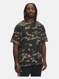 Project Rock training gear was built for the hardest workers in the room.This heavyweight graphic T is ultra-comfortable and makes a statement with an all-over camo print. Product Details - Heavyweight, soft cotton-blend fabric provides all-day comfort - Ribbed collar - Main body fabric contains at least 40% recycled polyester, excluding trims & embellishments Size & Fit - Fuller cut for complete comfort. Space & Care - Style #: 1389976 - 60% Cotton/40% Polyester - Imported