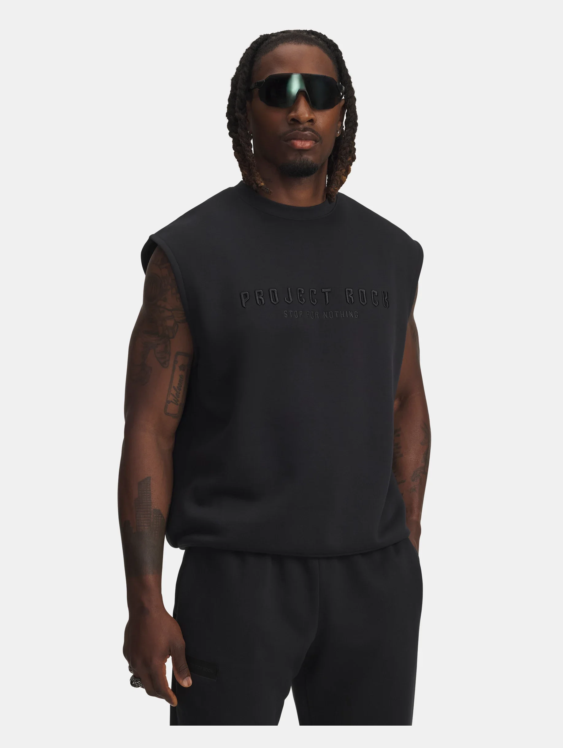 Project Rock training gear was built to help you find boundaries, then push right through them.This sleeveless fleece was personally approved by Dwayne Johnson, the hardest worker in the room. ANY room. Product Details - Ultra-soft, mid-weight cotton-blend fleece with brushed interior for extra warmth - Ribbed collar & bottom hem Size & Fit - Fuller cut for complete comfort. Space & Care - Style #: 6005012 - 80% Cotton/20% Polyester - Imported