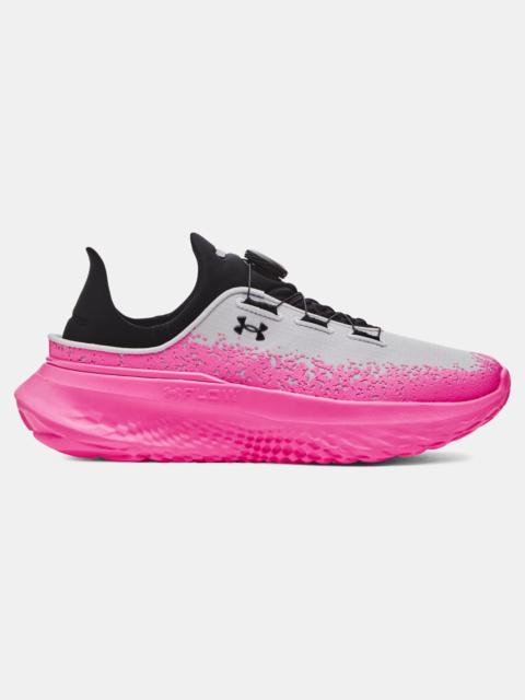 What's it do? The most versatile shoes we've ever made with a supersized midsole for mega energy. They feel great, cushion better, fit perfectly, handle your toughest runs, AND have a heel that converts easily from slip mode to speed mode. Product DNA - SUPERSIZED UA FLOW CUSHIONING: Unmatched comfort, ground contact & traction - BREATHABLE UPPER: Durable ripstop material with engineered venting - BOA FIT SYSTEM: A personalized fit, one click at a time, with a 12-point lockdown system - ISO-CHILL PADDED INTERIOR: Heel to toe interior foam padding with cool-to-the-touch Iso-Chill technology - MACHINE WASHABLE: We made it easy—put them in the wash to keep them fresh & clean* - CONVERTIBLE HEEL: Go from run mode to recover mode - *Laundry bag not included - Regular - Style #: 3028539 - Lace type: BOA™ - Imported