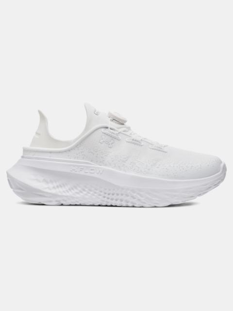 What's it do? The most versatile shoes we've ever made with a supersized midsole for mega energy. They feel great, cushion better, fit perfectly, handle your toughest runs, AND have a heel that converts easily from slip mode to speed mode. Product DNA - SUPERSIZED UA FLOW CUSHIONING: Unmatched comfort, ground contact & traction - BREATHABLE UPPER: Durable ripstop material with engineered venting - BOA FIT SYSTEM: A personalized fit, one click at a time, with a 12-point lockdown system - ISO-CHILL PADDED INTERIOR: Heel to toe interior foam padding with cool-to-the-touch Iso-Chill technology - MACHINE WASHABLE: We made it easy—put them in the wash to keep them fresh & clean* - CONVERTIBLE HEEL: Go from run mode to recover mode - *Laundry bag not included - Regular - Style #: 3028539 - Lace type: BOA™ - Imported