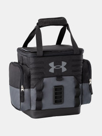 What's it do? A cooler that keeps the whole team's drinks cold, with quick-access lid, easy-to-clean liner, and fence hooks. Product DNA - Holds 12 12oz. cans with room for ice - Built-in fence hooks offer easy hanging - Durable, coated outer fabric resists dirt & water & rigid interior liner is easy to clean - Insulated quick-access lid & comfort haul handle - 2 exterior zip pockets for additional storage - Molle webbing attachment points for easy clip-on - One Size Fits All - Style #: 1364837 - BPA & lead free - Dimensions: 11.5"H x 13.5"W x 8"D - Interior dimensions: 9"W x 6.5"L x 8"D - Weight: 1.3lbs - Manufactured by USB, exclusive licensee of Under Armour®