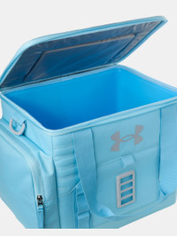 What's it do? A cooler that keeps the whole team's drinks cold, with quick-access lid, easy-to-clean liner, fence hooks—even a bottle opener. Product DNA - Holds 24 12oz. cans with room for ice - Built-in fence hooks offer easy hanging - Durable, coated outer fabric resists dirt & water & rigid interior liner is easy to clean - 2 exterior zip pockets & Armour Stash catch-all bag that hooks to exterior pocket for added storage - Insulated quick-access lid, adjustable carry strap & built-in bottle opener for added convenience - Molle webbing attachment points for easy clip-on - One Size Fits All - Style #: 1364838 - BPA & lead free - Dimensions: 11.5"H x 16"W x 10"D - Interior dimensions: 12"W x 9"L x 10"D - Weight: 1.8lbs - Manufactured by USB, exclusive licensee of Under Armour®