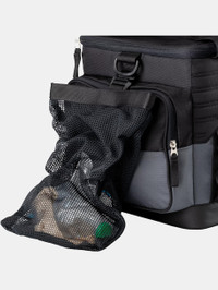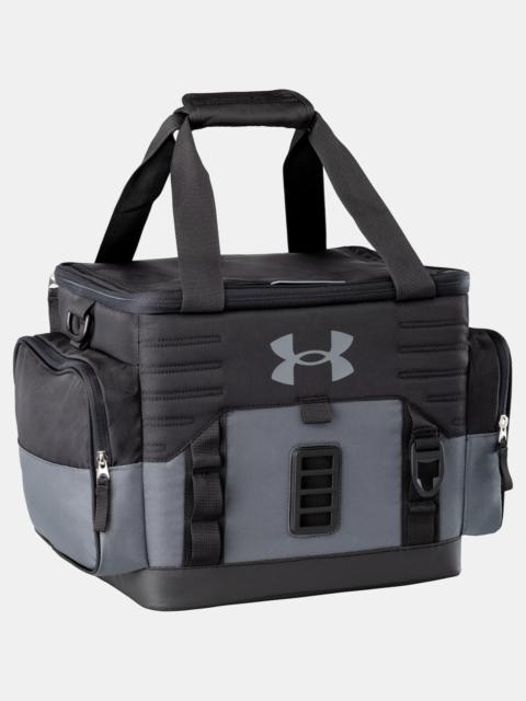 What's it do? A cooler that keeps the whole team's drinks cold, with quick-access lid, easy-to-clean liner, fence hooks—even a bottle opener. Product DNA - Holds 24 12oz. cans with room for ice - Built-in fence hooks offer easy hanging - Durable, coated outer fabric resists dirt & water & rigid interior liner is easy to clean - 2 exterior zip pockets & Armour Stash catch-all bag that hooks to exterior pocket for added storage - Insulated quick-access lid, adjustable carry strap & built-in bottle opener for added convenience - Molle webbing attachment points for easy clip-on - One Size Fits All - Style #: 1364838 - BPA & lead free - Dimensions: 11.5"H x 16"W x 10"D - Interior dimensions: 12"W x 9"L x 10"D - Weight: 1.8lbs - Manufactured by USB, exclusive licensee of Under Armour®