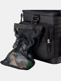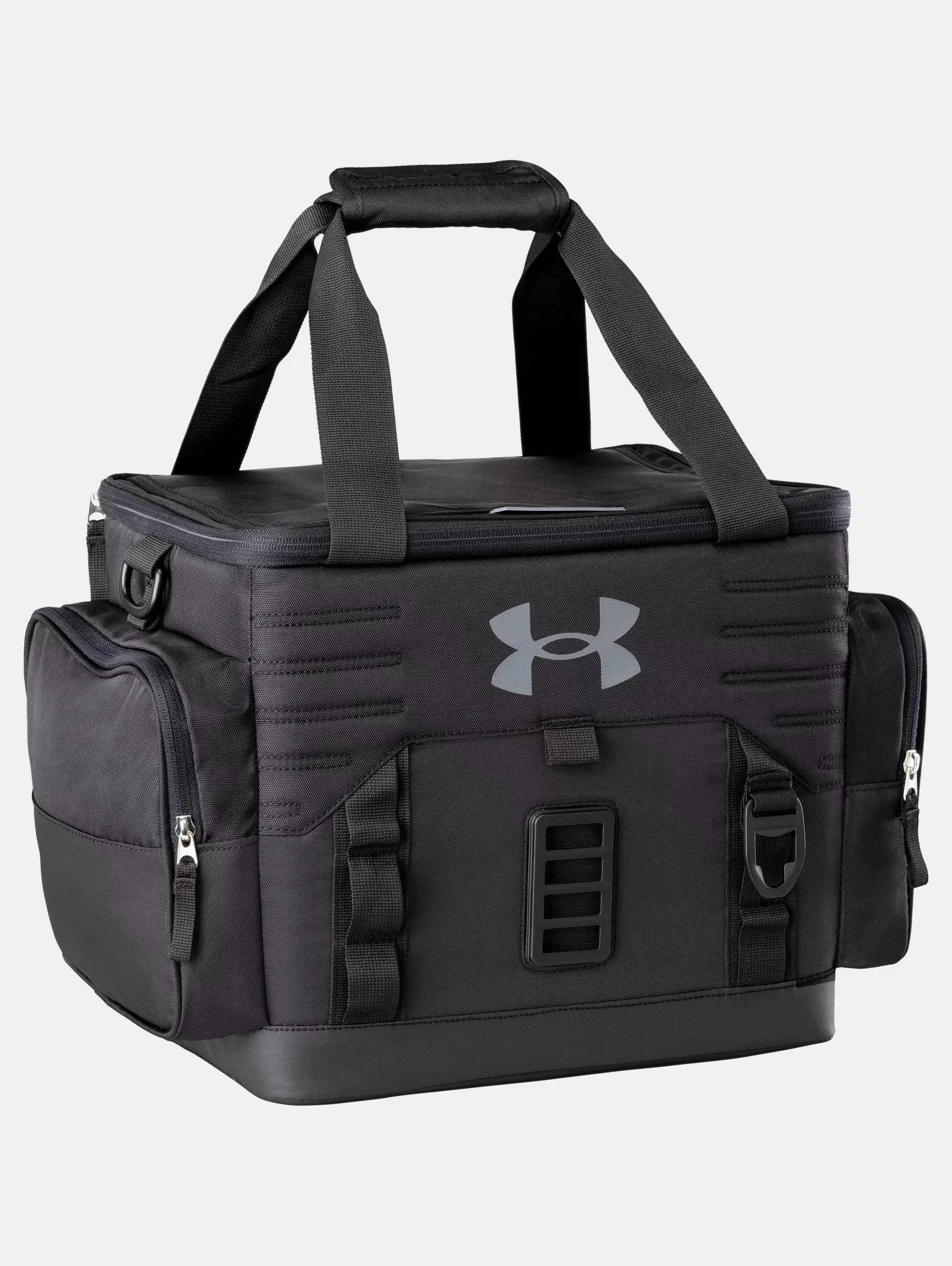 What's it do? A cooler that keeps the whole team's drinks cold, with quick-access lid, easy-to-clean liner, fence hooks—even a bottle opener. Product DNA - Holds 24 12oz. cans with room for ice - Built-in fence hooks offer easy hanging - Durable, coated outer fabric resists dirt & water & rigid interior liner is easy to clean - 2 exterior zip pockets & Armour Stash catch-all bag that hooks to exterior pocket for added storage - Insulated quick-access lid, adjustable carry strap & built-in bottle opener for added convenience - Molle webbing attachment points for easy clip-on - One Size Fits All - Style #: 1364838 - BPA & lead free - Dimensions: 11.5"H x 16"W x 10"D - Interior dimensions: 12"W x 9"L x 10"D - Weight: 1.8lbs - Manufactured by USB, exclusive licensee of Under Armour®