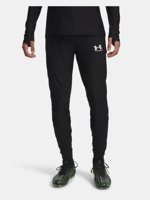 The UA Challenger collection has all your go-to soccer gear.These pants are built to keep you staying light and feeling fast on the field. Product Details - UA Microthread fabric dries faster, won't cling to you, won't chafe & stretches without absorbing sweat - 4-way stretch material moves better in every direction - Material wicks sweat & dries really fast - Jacquard panels for added breathability - Grippy waistband with internal drawcord for a secure, comfortable fit - Secure zip pocket on wearer's right side Size & Fit - Streamlined fit that's not too tight or too loose. Space & Care - Style #: 6005131 - Inseam: 28.625" - Pockets: Yes - 59% Elastarell/41% Polyester - Imported