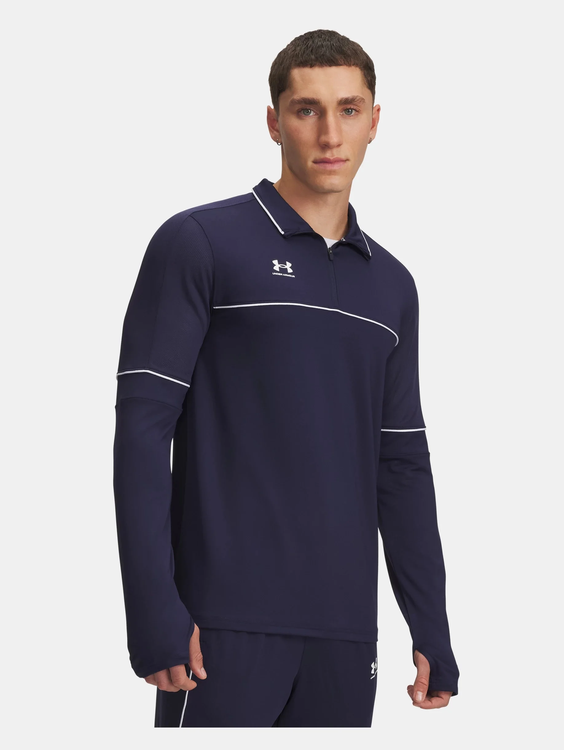 The UA Challenger collection has all your go-to soccer gear.This ¼ zip is built to keep you staying light and feeling fast on the field. Product Details - Textured knit fabric is light, tough & breathable - Material wicks sweat & dries really fast - ¼ Zip front makes for easy layering - Built-in thumbholes help keep sleeves in place Size & Fit - Streamlined fit that’s not too tight or too loose. Space & Care - Style #: 6004043 - 100% Polyester - Imported