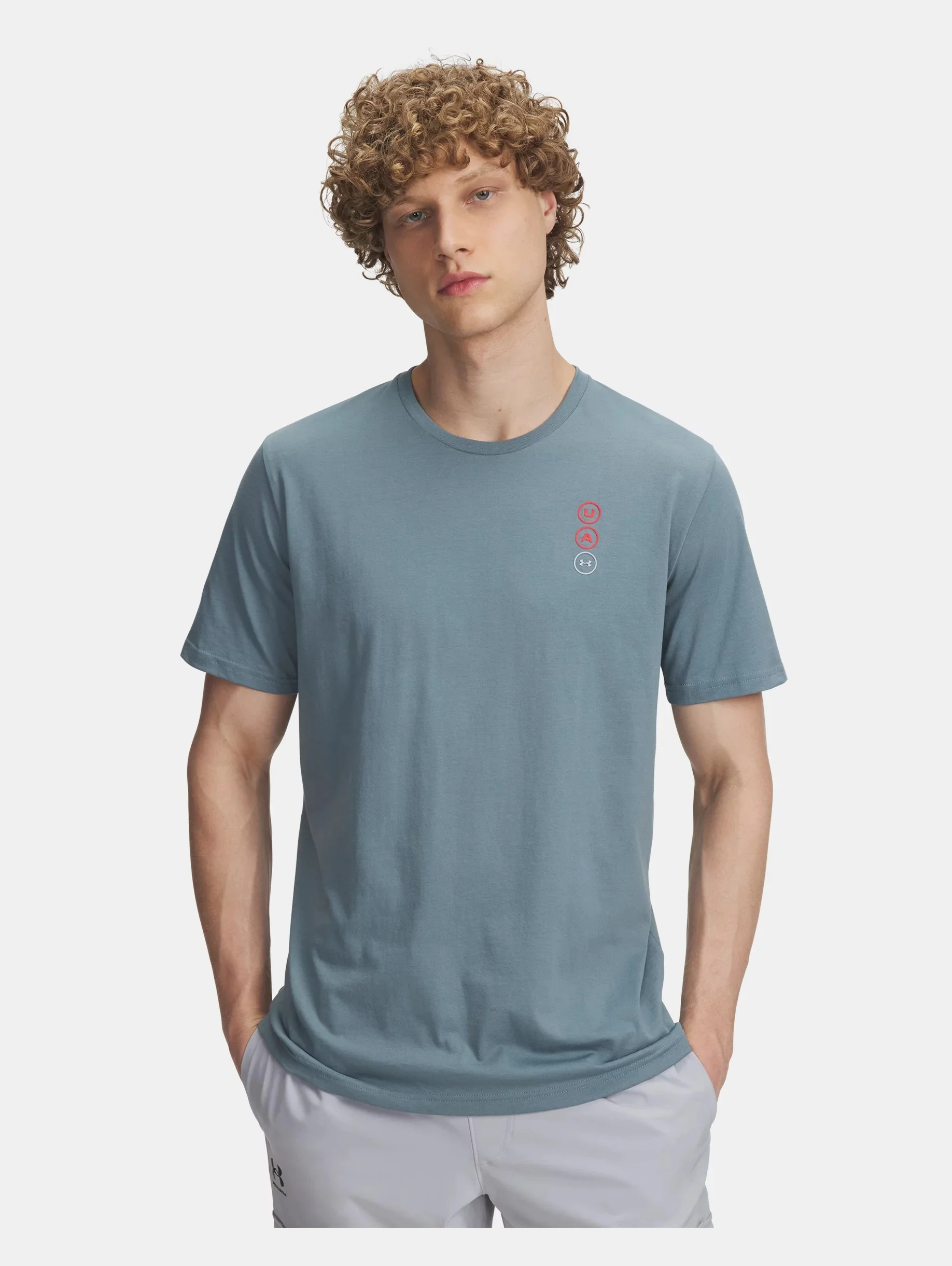 Everyone makes graphic Ts...but Under Armour makes them better.The fabric we use is light, soft, and quick-drying. This shirt features a low-profile front chest graphic with a color pop. Product Details - Super-soft, cotton-blend fabric provides all-day comfort - Ribbed collar Size & Fit - Fuller cut for complete comfort. Space & Care - Style #: 6004144 - 60% Cotton/40% Polyester - Imported