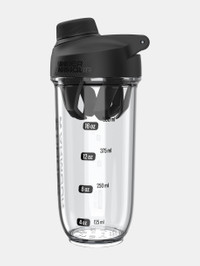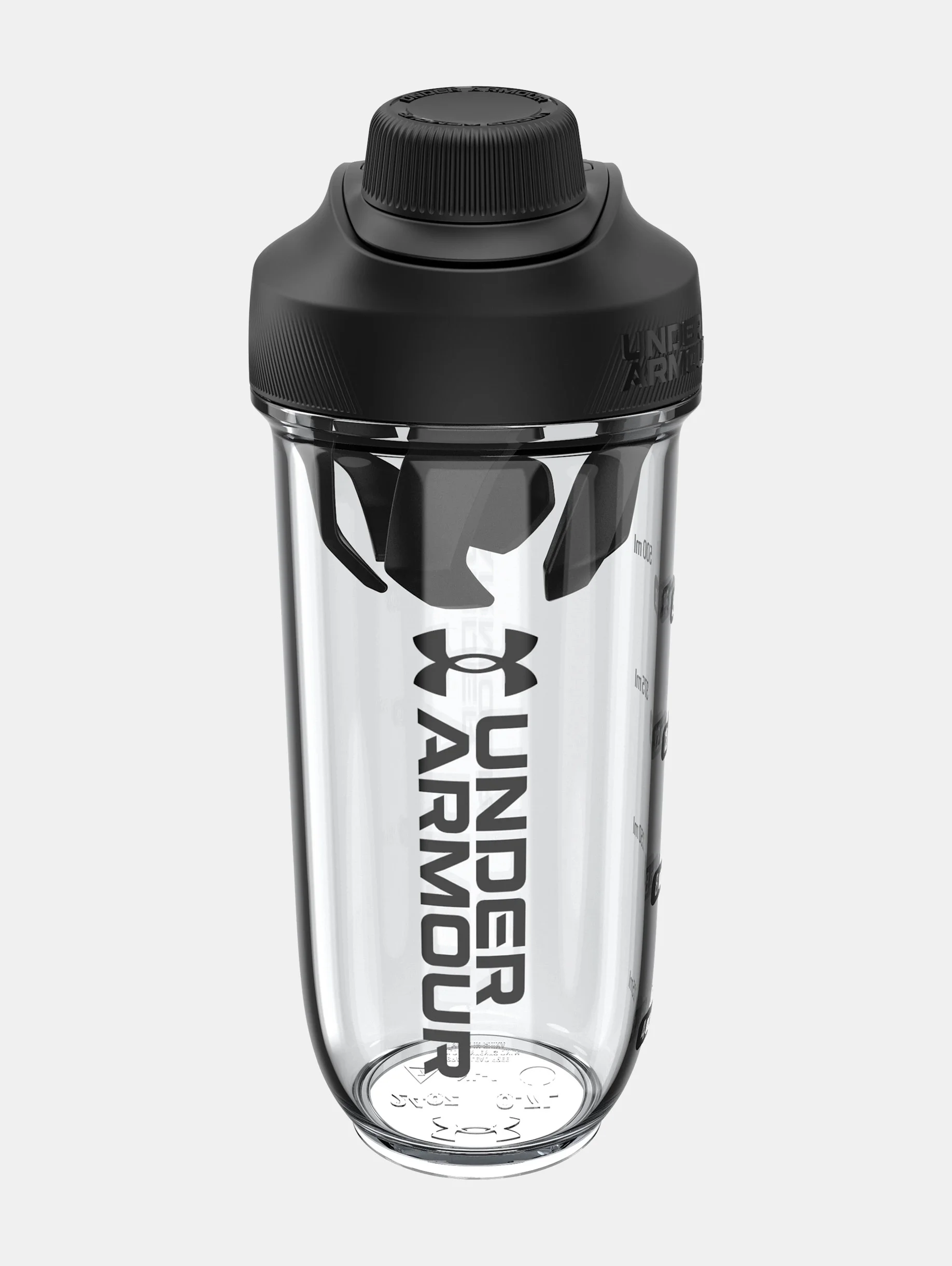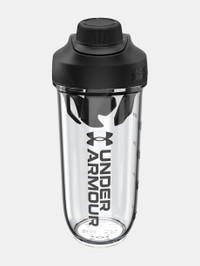 What's it do? A shaker bottle that is easy to use and hold onto, and is shatter-, stain-, and odor-resistant. No leaks, no clumps, no microplastics—plus it's easy to clean. Product DNA - Made with 50% certified recycled material, the equivalent of 5 single-use bottles - Removable agitator that delivers a near-quiet shake & doesn't generate microplastics - Lockable, leak-resistant lid also helps keep spout clean - Angled spout design makes it easier to sip when active & on the run - Twist cap with finger imprint & contoured design for a secure, more comfortable hold when you shake - Top cap easily rotates to stay out of the way when drinking & stowable finger loop makes for easy carry - Marked with ounces & milliliters for easy measuring - BPA & lead free - No Fit Type - Style #: 1390508 - Capacity: 24 oz. - Dimensions: 9" H x 3.5" W x 4" D - Weight: 9.5 oz (0.6 lbs.) - Manufactured by USB, exclusive licensee of Under Armour® - Imported