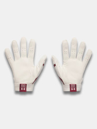 These gloves give you the grip and protection you need every at bat, all season.Our signature TurfGear fabric keeps your hands cool and dry, and the synthetic palms are more durable than traditional leather. Product Details - Battle-tested, smooth TurfGear material is light, durable & wicks sweat to keep your hands cool & dry - Synthetic leather palm provides durability & grip - Silicone print across fingers & synthetic leather finger caps for added structure & support - Adjustable elastic wrist cuffs provide support & a locked-in, powerful feel - Woven label designed to easily customize with your number Size & Fit - Adjustable Space & Care - Style #: 6000254 - Glossy UA logo - Sold in pairs - 70% Polyurethane/25% Polyester/5% Elastane - Imported