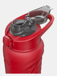 When you're running or training, you don't always have a spare hand when you need to hydrate. That's why we made this—the pop top lid only needs one hand to work. Product Details - Vacuum-insulated for maximum temperature retention keeps beverages cold for 20 hours - Unbreakable stainless steel interior & exterior for ultimate durability - Lockable, leak-resistant lid also helps keep spout clean - Built-in carry handle with carabiner clip for easy attachment - One-hand operation for hydration on the go - Non-slip side grip for a comfortable, secure hold & silicone bottom for quiet set-down on any surface - BPA & lead free - Removable cap gasket for easy cleaning Size & Fit - One Size Fits All Space & Care - Style #: 1380267 - Capacity: 24 oz. - Dimensions: 10.6"H x 3.2"W x 4.45"D - Manufactured by USB, exclusive licensee of Under Armour® - Imported - Top-rack dishwasher safe; however, hand wash is recommended to maintain bottle's appearance - Before first use: wash all parts with warm, soapy water, rinse thoroughly & allow time to dry - Contents should not be left in the container for longer than 24 hours - Do not use abrasive cleaners or scrubbers as they will damage the finish - Do not use bleach or cleaners containing chlorine or other harsh chemicals on any parts of the product - Contents may get trapped between parts/under gaskets, hand wash is recommended to ensure thorough cleaning