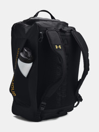 What's it do? This is the bag you need it to be. Carry it as a backpack or as a duffle—whatever the situation demands. And, since it's one of our bags, you know it's also tough and water-repellent so it can go anywhere. Product DNA - Works as both a backpack & duffle with removable & padded duffle strap - Water-repellent UA Storm technology keeps your essentials dry - LEVELED™ strap system guides you to assure straps are adjusted evenly for balanced weight distribution - Large main compartment with internal organization for carrying a laptop, valuables & more - Soft-lined laptop sleeve—holds up to 15" MacBook Pro® or similarly sized laptop - Internal laundry/shoe pocket placed at bottom - Drop-in water bottle pocket & 2 exterior valuables pockets - D-ring attachment point so you can clip any bag with a carabiner for easy transport - One Size Fits Most - Style #: 1381919 - Top grab handle - Dimensions When Full: 12.2"W x 10"H x 20.3"L - Volume: 50 L - 100% Polyester - Imported