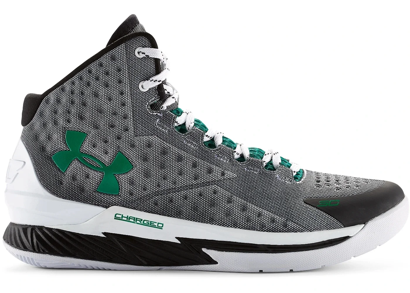 As one of Stephen Curry’s favorite sports outside of basketball, golfing inspires the Under Armour Curry One "Golf," which is also sometimes called the Curry One "Scratch White." As you might imagine, Curry is very good at golf. In fact he’s rumored to have a handicap of 1 or 2 and even played for 3 years on his high school’s golf team, so you can understand why he’d want Under Armour to create a colorway inspired by his love for the sport. The Scratch White Curry One features a grey upper with a white heel counter and two-tone white and black midsole. Accents come in the form of green SC/30 and UA logos and a mesh tongue in a color Under Armour calls "Persian." While this Curry One Golf may be inspired by golf, it’s still all basketball with the Curry One. The Curry One is Stephen Curry’s first signature sneaker and one he wore for the 2014-2015 season in which his list of accomplishments include a record amount of 3-pointers, a 3-point contest win, a league Most Valuable Player award, and NBA championship and much more. The Under Armour Curry One "Scratch White" golf inspired colorway dropped in the summer of 2015 alongside a low-top version and as you might expect, was popular amongst Steph’s loyal fan base. - Style 1258723-100 - Colorway White/Black-Persian - Retail Price 120 - Release Date 2015-07-31 - Featured false - Product Line Under Armour Curry