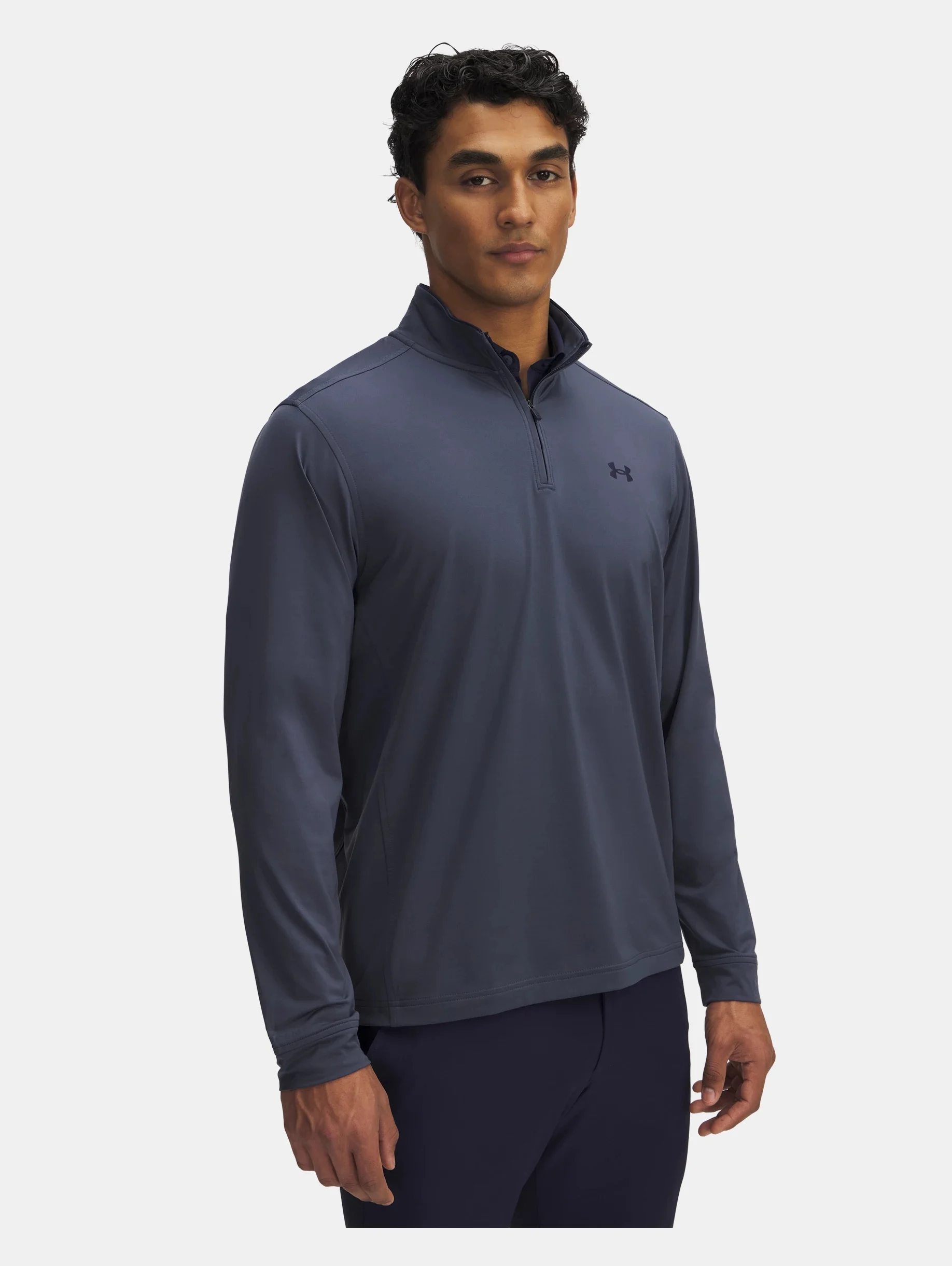 This golf layer gives you extra warmth without packing on weight or bulk. Product Details - UA Storm technology repels water without sacrificing breathability - New, lighter weight knit fabric is super-comfortable & lightly brushed for just the right amount of warmth - 4-way stretch material moves better in every direction - UPF 50+ protects your skin from the sun's harmful rays - ¼ zip front makes for easy layering - Piping detail on collar - Uses a fluorine-free water repellent treatment Size & Fit - Fuller cut for complete comfort. Space & Care - Style #: 1389864 - 86% Polyester/14% Elastane - Imported