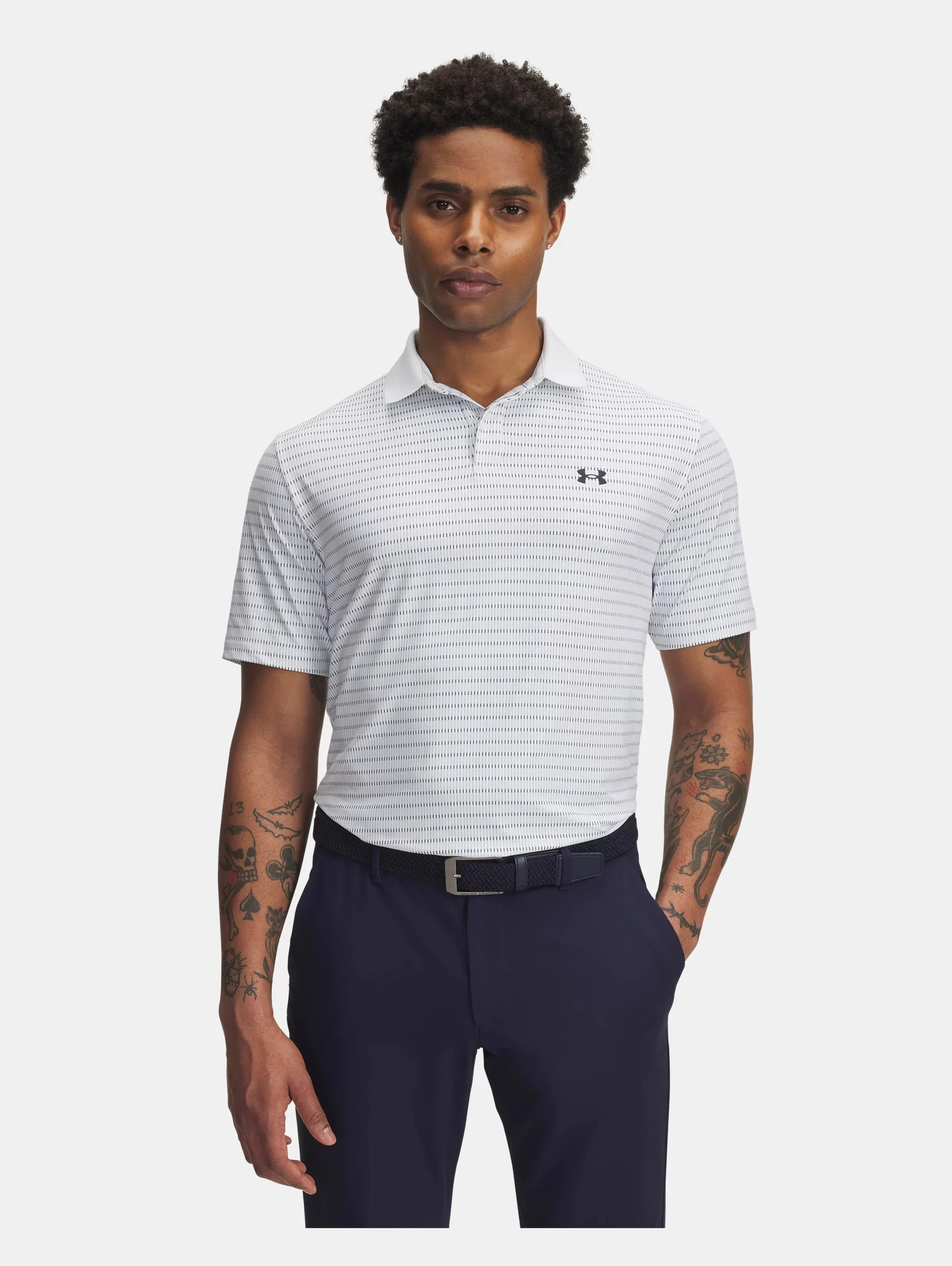 We flattened out the fibers in this printed golf polo and added some science to create a game-changing fabric that quickly pulls heat away from the skin-keeping you calm, cool, and crushing at max capacity on the course. Product Details - Iso-Chill fabric helps disperse body heat, making it feel cool to the touch - 4-way stretch material moves better in every direction - Material wicks sweat & dries really fast - UPF 50+ protects your skin from the sun's harmful rays - Strategic laser perforations on underarms for added ventilation - 2-button placket with modern ribbed collar & engineered mesh detail - Side-vent hem - Odor control technology minimizes odor Size & Fit - Fuller cut for complete comfort. Space & Care - Style #: 1389597 - 88% Nylon/12% Elastane - Imported