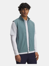 It's quiet when you swing and gives you protection from the wind, the rain, and the cold—all without feeling bulky or holding you back. With this, there is no off-season, no matter where you golf. Product Details - UA Storm technology repels water without sacrificing breathability - Durable stretch-woven fabric with fleece lining that feels lighter, keeps you warmer & moves with you - 4-way stretch material moves better in every direction - Quilted insulation on chest & upper back for added warmth without the bulk - Secure zip hand pockets - Built-in tee holder on wearer's right side - Main body fabric contains at least 80% recycled polyester, excluding trims & embellishments Size & Fit - Fuller cut for complete comfort. Space & Care - Style #: 6005670 - Reflective logo - Exterior: 87% Polyester/13% Elastane - Lining: 100% Polyester - Imported