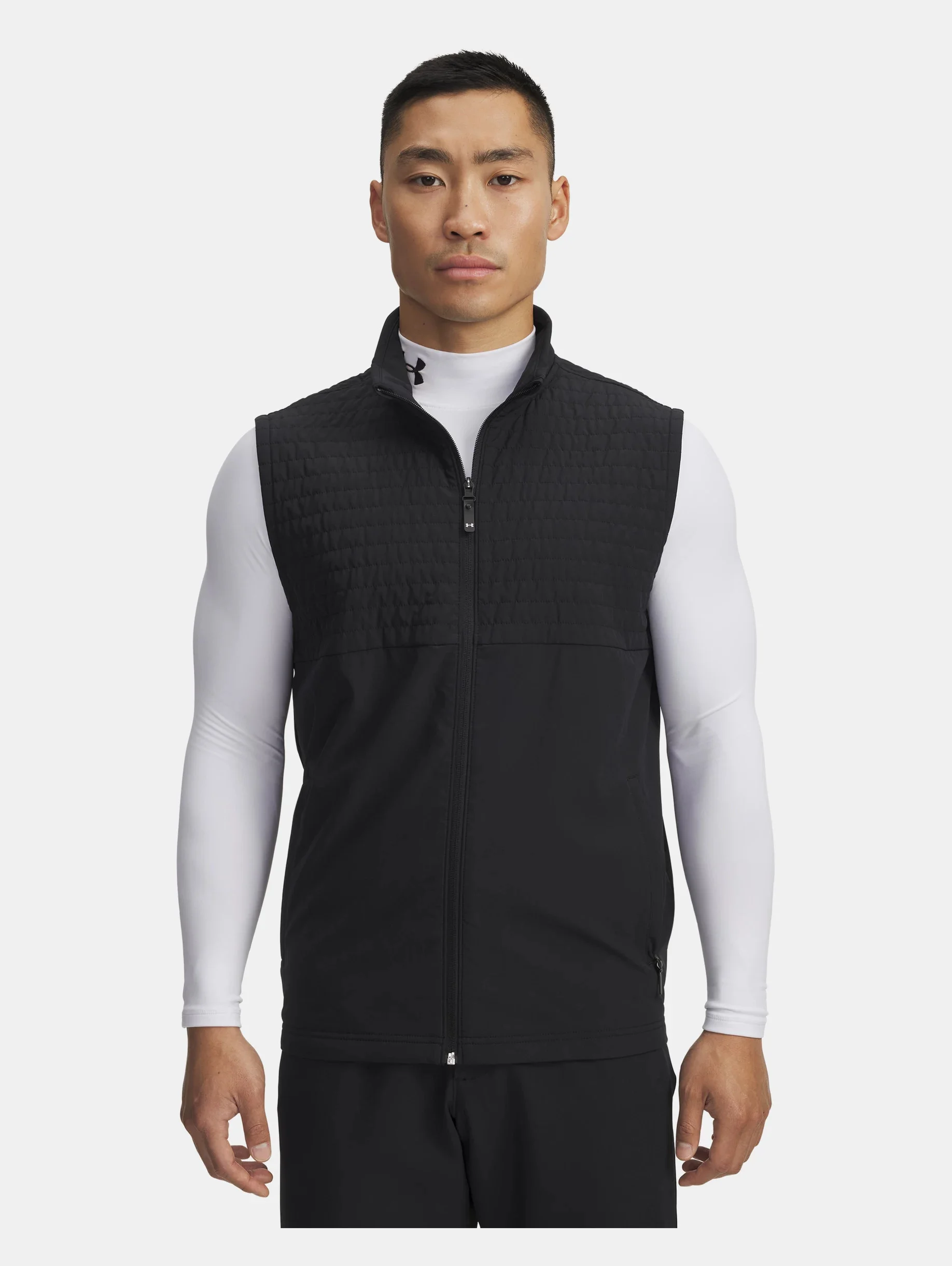 It's quiet when you swing and gives you protection from the wind, the rain, and the cold—all without feeling bulky or holding you back. With this, there is no off-season, no matter where you golf. Product Details - UA Storm technology repels water without sacrificing breathability - Durable stretch-woven fabric with fleece lining that feels lighter, keeps you warmer & moves with you - 4-way stretch material moves better in every direction - Quilted insulation on chest & upper back for added warmth without the bulk - Secure zip hand pockets - Built-in tee holder on wearer's right side - Main body fabric contains at least 80% recycled polyester, excluding trims & embellishments Size & Fit - Fuller cut for complete comfort. Space & Care - Style #: 6005670 - Reflective logo - Exterior: 87% Polyester/13% Elastane - Lining: 100% Polyester - Imported