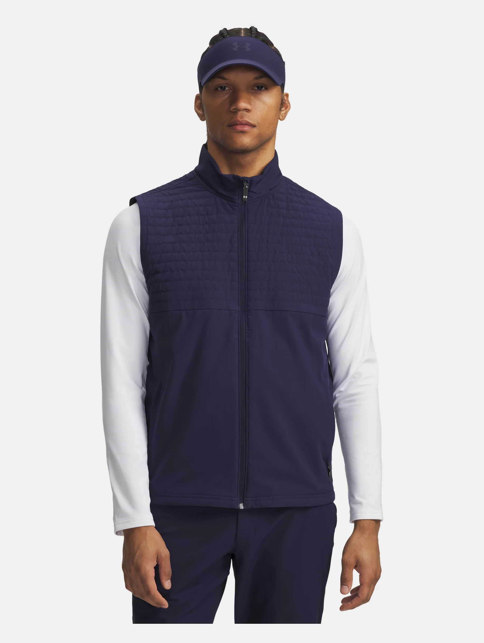 It's quiet when you swing and gives you protection from the wind, the rain, and the cold—all without feeling bulky or holding you back. With this, there is no off-season, no matter where you golf. Product Details - UA Storm technology repels water without sacrificing breathability - Durable stretch-woven fabric with fleece lining that feels lighter, keeps you warmer & moves with you - 4-way stretch material moves better in every direction - Quilted insulation on chest & upper back for added warmth without the bulk - Secure zip hand pockets - Built-in tee holder on wearer's right side - Main body fabric contains at least 80% recycled polyester, excluding trims & embellishments Size & Fit - Fuller cut for complete comfort. Space & Care - Style #: 6005670 - Reflective logo - Exterior: 87% Polyester/13% Elastane - Lining: 100% Polyester - Imported