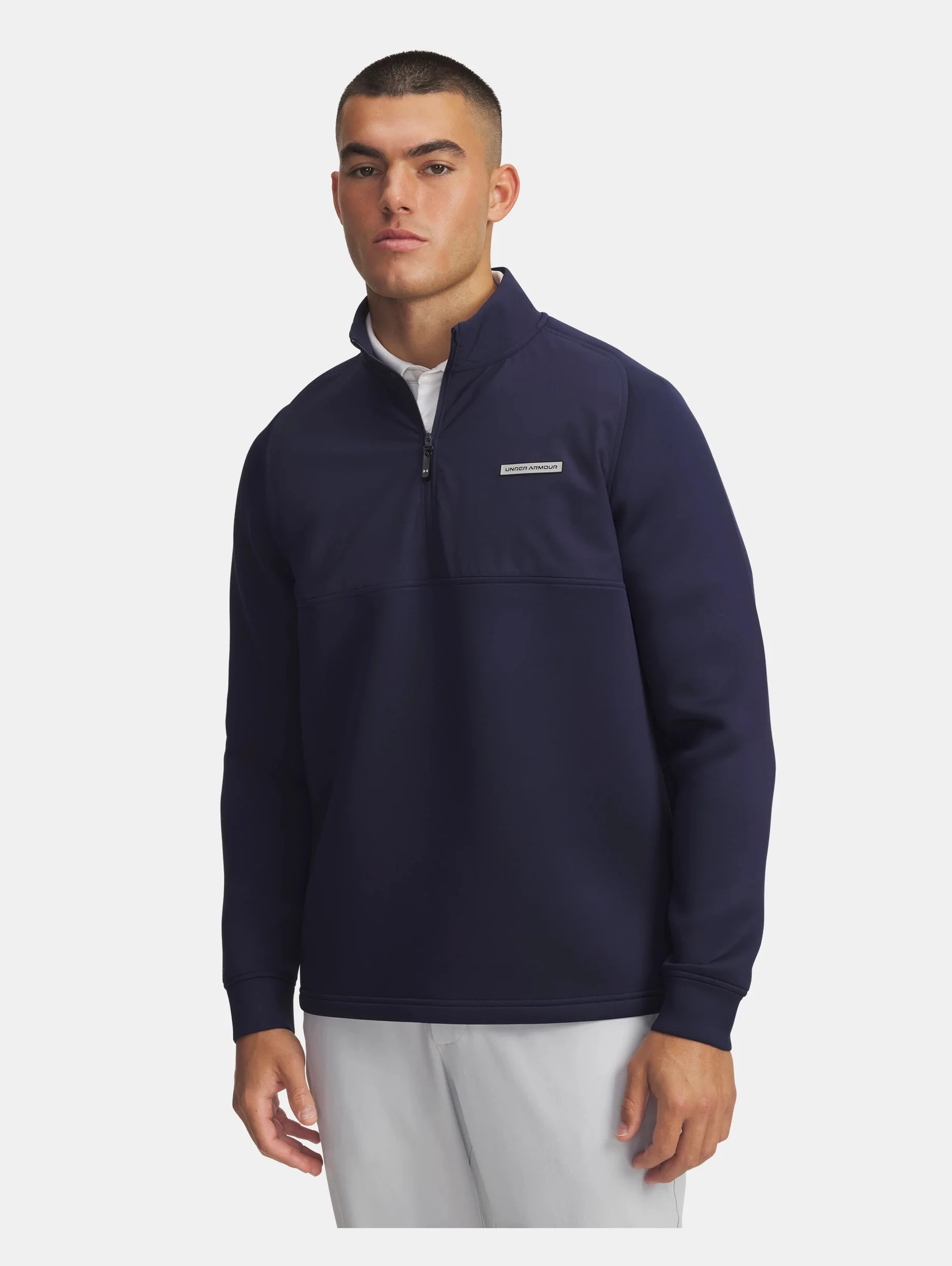 This is the one layer you don't have to keep taking off and putting on all day.That's because it actually adapts to the temperature, keeping you warm when it's cool, but letting out extra heat as the day gets going. Product Details - UA Storm technology repels water without sacrificing breathability - Durable stretch-woven fabric on front chest & collar with lightweight fleece insulation for warmth without bulk - Soft, smooth knit spacer fabric through the body & sleeves for breathability where you need it - Generous ½ Zip front makes for easy layering - Built-in tee holder on wearer's right side Size & Fit - Fuller cut for complete comfort. Space & Care - Style #: 6005666 - Woven: 87% Polyester/13% Elastane - Knit: 88% Polyester/12% Elastane - Lining: 100% Polyester - Imported