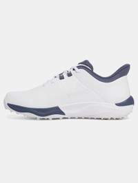 The new UA Drive Pro Spikeless golf shoes are biomechanically engineered, and lab tested, to provide the traction, and diagonal and lateral support your feet need to unlock the power of your natural swing. Product Details - UA Swing Support System (S3) provides smarter traction, dual-foam cushioning & lockdown lacing - Swing Support Strap combines with reinforcement in the upper to provide biomechanically correct lock-in - Energy-returning UA HOVR™ foam + supportive Charged Cushioning® guides natural motion of the foot in a golf swing - Hybrid TPU + rubber outsole for ideal combination of penetrating traction & underfoot comfort - Outsole has strategic flex grooves, directional traction & rubber up the side for added support at impact - Updated fit with more room at the ball of the foot for improved comfort & stability - Breathable, supportive engineered microfiber upper & full waterproof membrane with 1-year warranty - Molded sockliner for enhanced fit & comfort Size & Fit - Wide Space & Care - Style #: 3026921 - 1 year waterproof warranty - Weight: 12 oz. - Lace type: Standard tie - Imported - E Sizing built to better fit athletes with wide feet