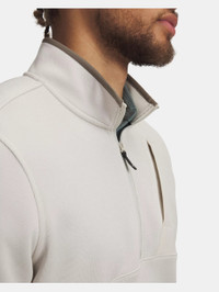 We combined the comfort and warmth of a sweater, the performance of our stretchy, lightweight fleece, and the rain protection of a jacket. You'll wear it all season. Product Details - UA Storm technology repels water without sacrificing breathability - SweaterFleece fabric with heathered look has a soft, brushed interior with stretch for complete mobility - Angled, hidden zip chest pocket with woven panel for added durability - Generous ½ Zip front makes for easy layering - Binding detail on cuffs, bottom hem & collar - Built-in tee holder on wearer's right side Size & Fit - Fuller cut for complete comfort. Space & Care - Style #: 6005671 - 100% Polyester - Imported