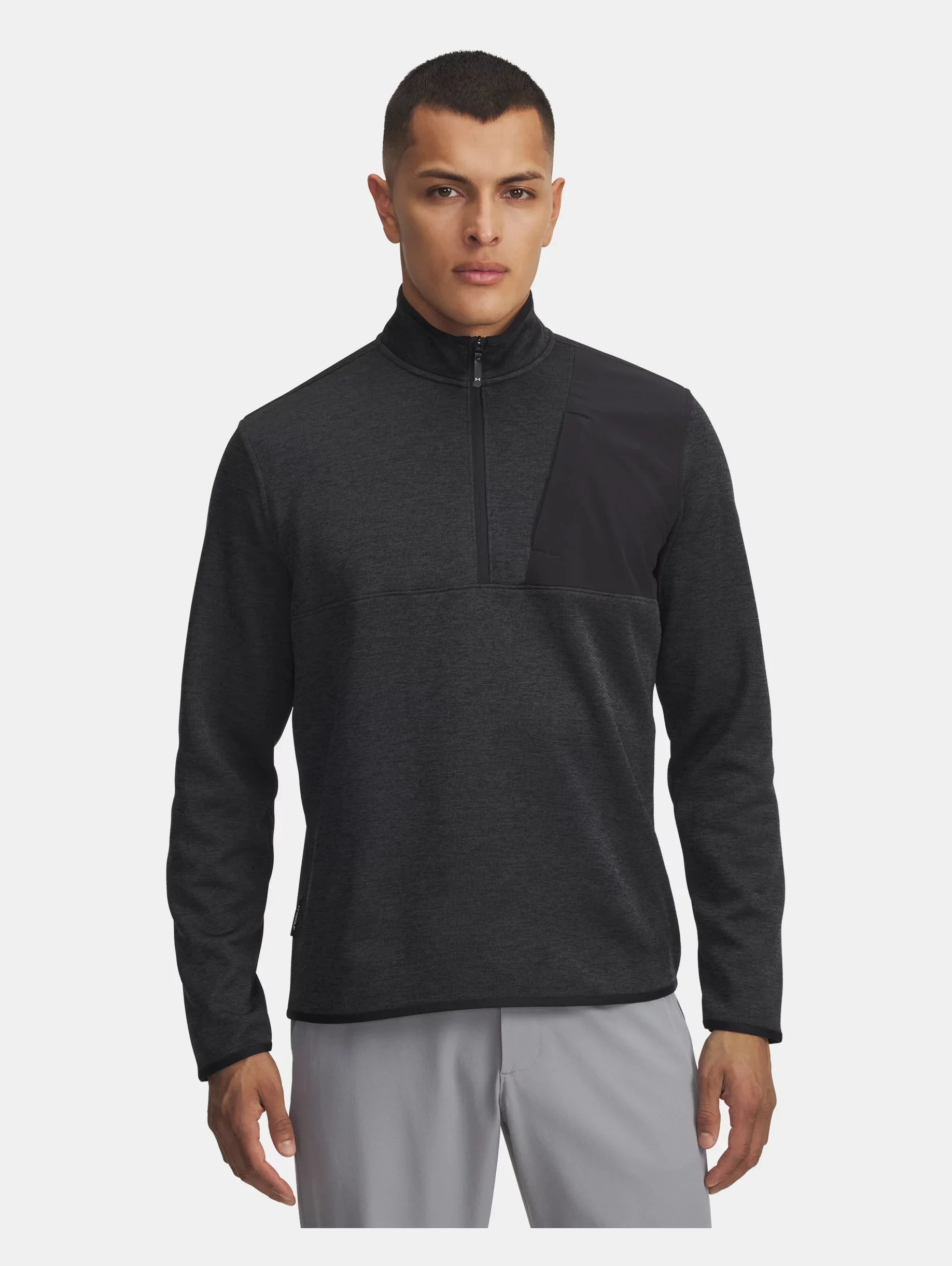 We combined the comfort and warmth of a sweater, the performance of our stretchy, lightweight fleece, and the rain protection of a jacket. You'll wear it all season. Product Details - UA Storm technology repels water without sacrificing breathability - SweaterFleece fabric with heathered look has a soft, brushed interior with stretch for complete mobility - Angled, hidden zip chest pocket with woven panel for added durability - Generous ½ Zip front makes for easy layering - Binding detail on cuffs, bottom hem & collar - Built-in tee holder on wearer's right side Size & Fit - Fuller cut for complete comfort. Space & Care - Style #: 6005671 - 100% Polyester - Imported