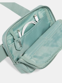 What's it do? The pockets are designed to give you quick access to the items you need the most, and you can wear it as a waist or crossbody bag. Product DNA - Water-resistant UA Storm technology keeps your essentials dry - Adjustable strap with buckle closure can be worn as a waist bag or a crossbody - RFID-blocking pocket on back for credit card theft protection - Zippered main compartment with internal organization pockets & key clip - Front valuables pocket - *UA Contain Micro attachment sold separately - One Size Fits Most - Style #: 1378418 - Dimensions When Full: 2"W x 5.1"H x 7.9"L - Volume: 2 L - 100% Polyester - Imported