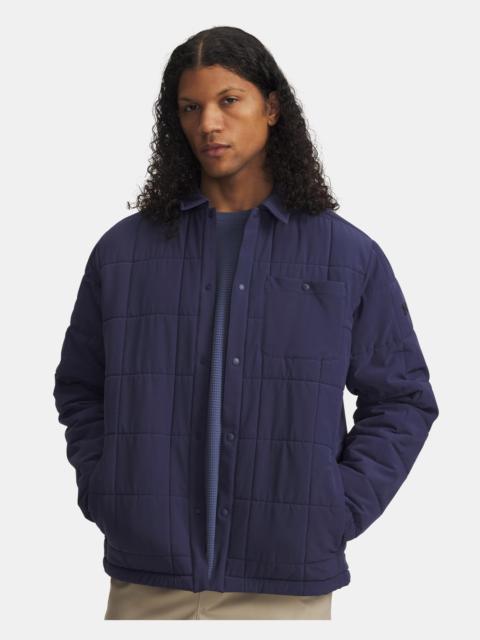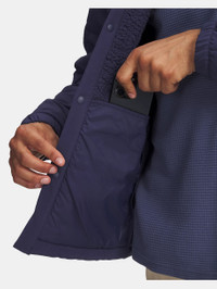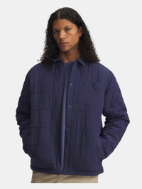 The water-resistance and light insulation of a jacket, with snap front closures and the finished look of a shirt. Product Details - UA Storm technology repels water without sacrificing breathability - Durable stretch-woven exterior with ultra-soft, warm Sherpa interior lining for ultimate comfort - Strategic 80g synthetic insulation in the sleeves for lightweight warmth without any excess bulk - Secure, snap-closure hand pockets & chest pocket - Full-length front snap closures - Encased elastic cuffs - Uses a fluorine-free water repellent treatment - Main body fabric contains at least 80% recycled polyester, excluding trims & embellishments Size & Fit - Fuller cut for complete comfort. Space & Care - Style #: 1387030 - Exterior: 87% Polyester/13% Elastane - Interior: 100% Polyester - Imported - Machine wash cold with like colors - Do not bleach - Tumble dry low - Do not iron - Do not use softeners - Do not dry clean