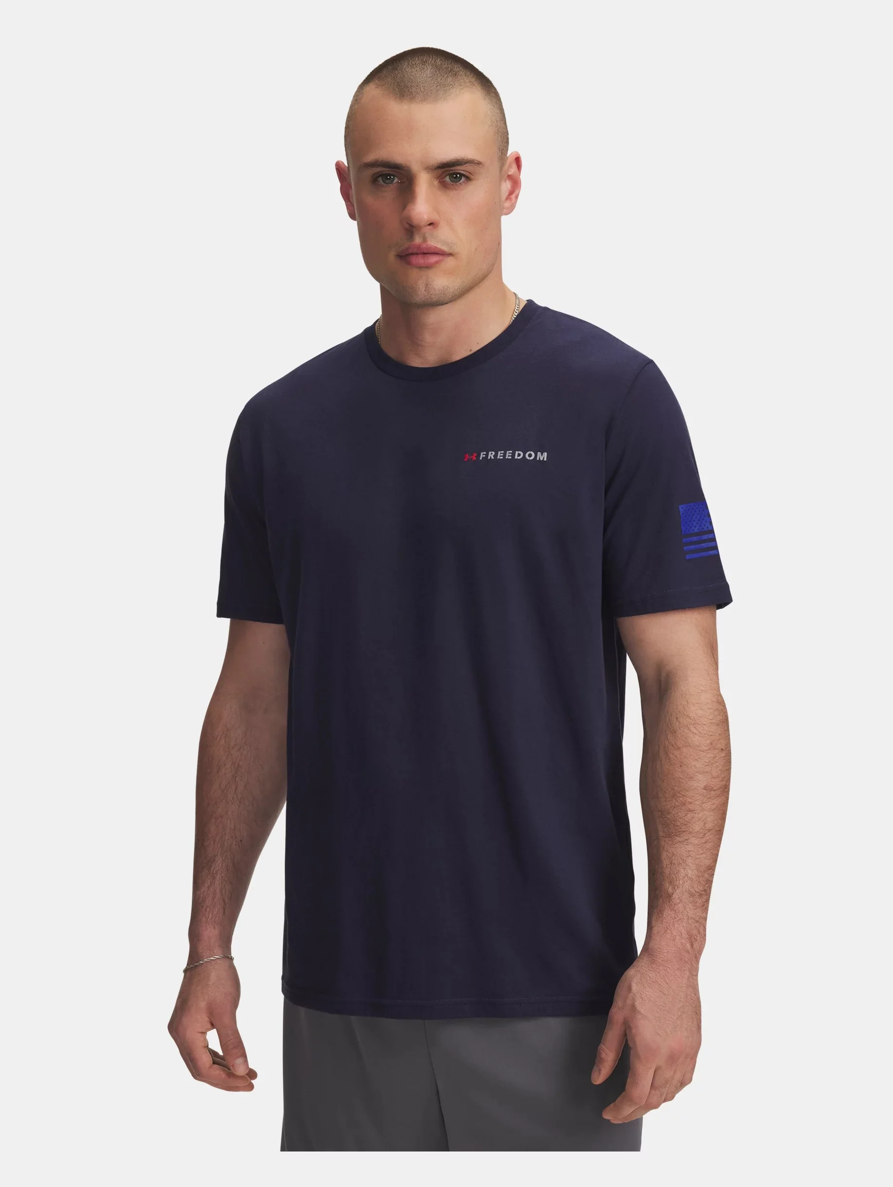 UA Freedom's goal is to support and inspire the brave men and women dedicated to protecting us, every day. This graphic T is soft and comfortable with flag graphics. Product Details - Super-soft, cotton-blend fabric provides all-day comfort - Ribbed collar Size & Fit - Fuller cut for complete comfort. Space & Care - Style #: 6004097 - 60% Cotton/40% Polyester - Imported