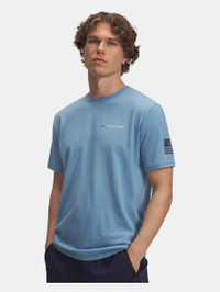 UA Freedom's goal is to support and inspire the brave men and women dedicated to protecting us, every day. This graphic T is soft and comfortable with flag graphics. Product Details - Super-soft, cotton-blend fabric provides all-day comfort - Ribbed collar Size & Fit - Fuller cut for complete comfort. Space & Care - Style #: 6004097 - 60% Cotton/40% Polyester - Imported