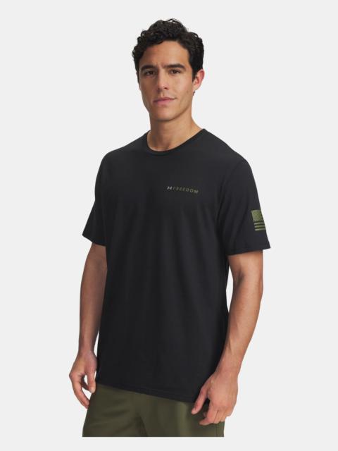 UA Freedom's goal is to support and inspire the brave men and women dedicated to protecting us, every day. This graphic T is soft and comfortable with flag graphics. Product Details - Super-soft, cotton-blend fabric provides all-day comfort - Ribbed collar Size & Fit - Fuller cut for complete comfort. Space & Care - Style #: 6004097 - 60% Cotton/40% Polyester - Imported
