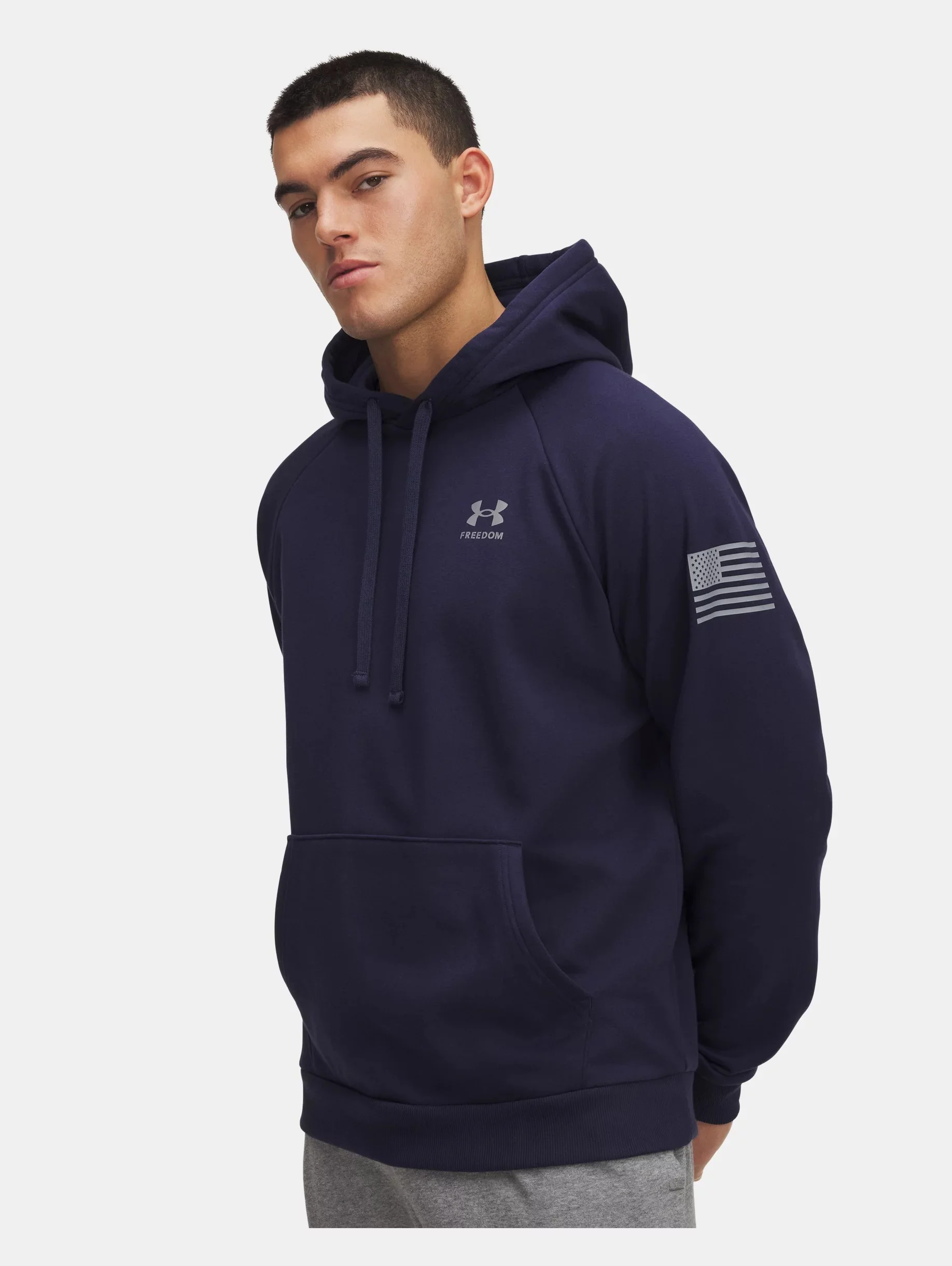 UA Freedom's goal is to support and inspire the brave men and women dedicated to protecting us, every day. This hoodie is light, comfy, and super-soft on the inside so you stay warmed up for anything. Product Details - Ultra-soft cotton-blend fleece with brushed inside for extra warmth - Front kangaroo pocket - Ribbed cuffs & bottom hem - Raglan sleeves Size & Fit - Fuller cut for complete comfort. Space & Care - Style #: 6005748 - 56% Cotton/44% Polyester - Imported