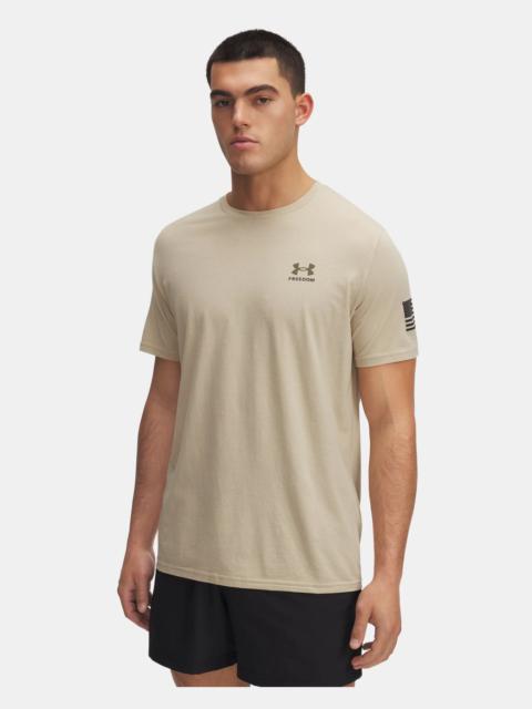 UA Freedom's goal is to support and inspire the brave men and women dedicated to protecting us, every day. This graphic T is soft and comfortable with a classic flag graphic. Product Details - Super-soft, cotton-blend fabric provides all-day comfort - Ribbed collar Size & Fit - Fuller cut for complete comfort. Space & Care - Style #: 6004096 - 60% Cotton/40% Polyester - Imported