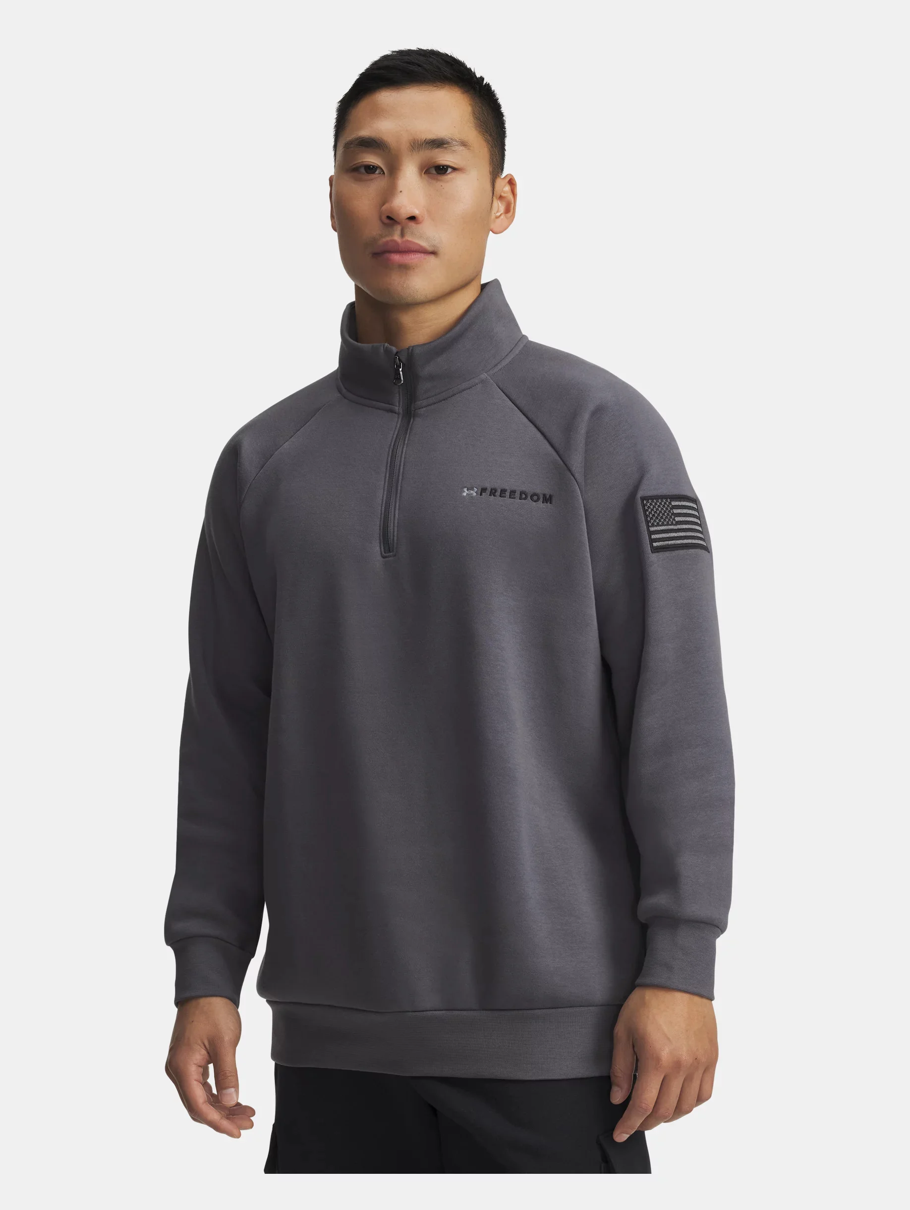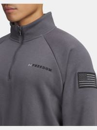 UA Freedom's goal is to support and inspire the brave men and women dedicated to protecting us, every day. This ½ zip has the feel of your favorite old school fleece with a clean, oversized fit. Product Details - Ultra-soft, mid-weight cotton-blend fleece with brushed interior for extra warmth - Generous ½ Zip front makes for easy layering - Ribbed cuffs & bottom hem - Raglan sleeves Size & Fit - Fuller cut for complete comfort. Space & Care - Style #: 6010692 - 80% Cotton/20% Polyester - Imported