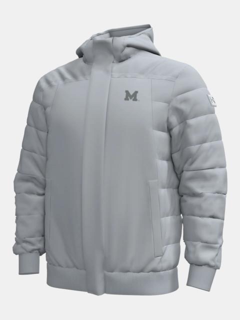 Even our fan gear is built for performance.This puffer jacket is warm, light, and still lets you move like an athlete. Product Details - UA Storm technology repels water without sacrificing breathability - Durable woven body fabric with all-over 4.2oz fill synthetic insulation for lightweight warmth - Secure zip hand pockets - Stretchy ribbed cuffs & bottom hem Size & Fit - Fuller cut for complete comfort. Space & Care - Style #: 6014930 - 100% Nylon - Imported