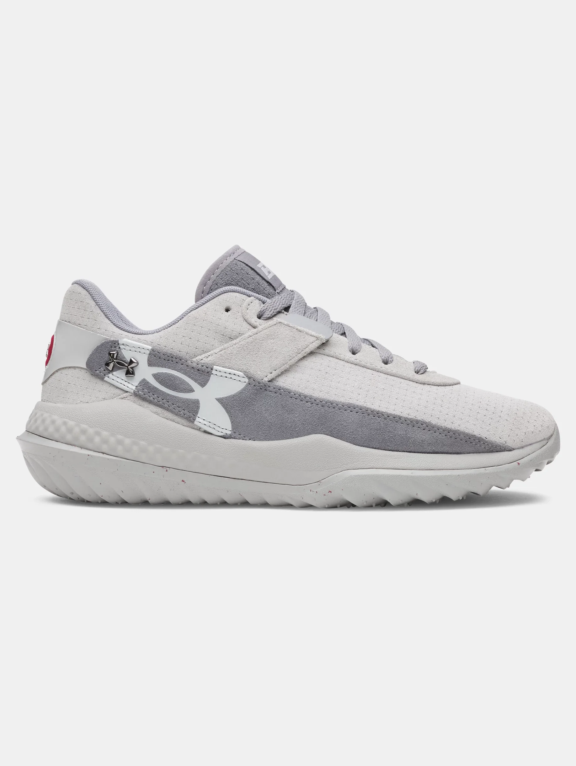 Bryce Harper never fails to bring the big energy—and neither does his turf shoe.UA Charged Cushioning®, lightweight traction, and elevated upper materials combine to give you a sneaker-like feel for everyday training. Product Details - Suede upper with perforated toe box for elevated comfort on any playing surface - Cushioned collar with sweat-wicking fabric provides lightweight ankle support & comfort - Textured leather wing with metallic finish for added lockdown & a stylish look - Charged Cushioning® midsole converts impact into explosive speed & power on the diamond - Versatile, non-marking rubber outsole provides lightweight traction designed for multiple surfaces Size & Fit - Regular Space & Care - Style #: 6000711 - Weight: 14.282 oz. - Lace type: Standard tie - Imported