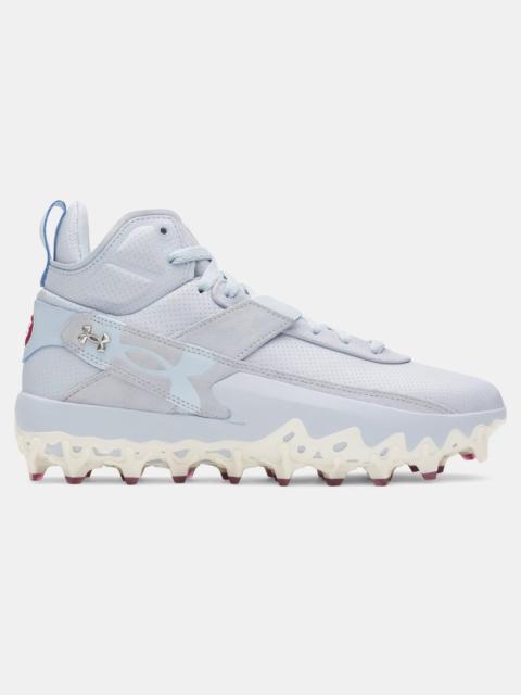 Bryce Harper never fails to bring the big energy—and neither does his turf shoe.UA Charged Cushioning®, lightweight traction, and elevated upper materials combine to give you a sneaker-like feel for everyday training. Product Details - Suede upper with perforated toe box for elevated comfort on any playing surface - Cushioned collar with sweat-wicking fabric provides lightweight ankle support & comfort - Textured leather wing with metallic finish for added lockdown & a stylish look - Charged Cushioning® midsole converts impact into explosive speed & power on the diamond - Versatile, non-marking rubber outsole provides lightweight traction designed for multiple surfaces Size & Fit - Regular Space & Care - Style #: 6000711 - Weight: 14.282 oz. - Lace type: Standard tie - Imported