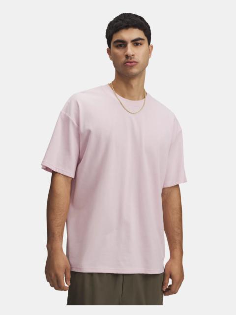 Everyone makes Ts...but Under Armour makes them better.This has a more substantial feel and looser fit but is still super-soft and comfortable. Product Details - Heavyweight, soft cotton-blend fabric provides all-day comfort - Ribbed collar - Drop hem shoulder for an oversized fit & feel Size & Fit - Fuller cut for complete comfort. Space & Care - Style #: 1384037 - 60% Cotton/40% Polyester - Imported - Wash garment inside out - Machine wash cold with like colors - Use only non-chlorine bleach when needed - Tumble dry low - Do not iron - Do not use softeners - Do not dry clean