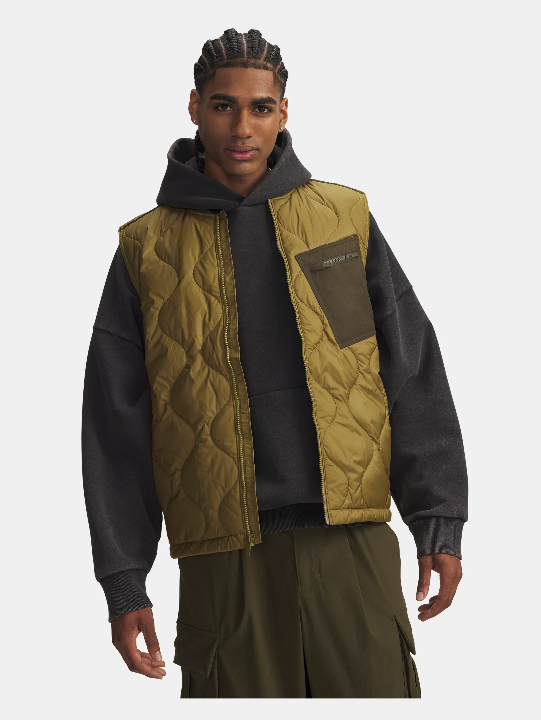 This vest gives you warmth without bulk, protection from the elements, and a classic, heritage look with an all-over quilted pattern. Product Details - UA Storm technology repels water without sacrificing breathability - Lightweight ripstop woven fabric with quilted pattern delivers superior comfort & durability - All-over 120g synthetic insulation for midweight warmth without any excess bulk - Ribbed collar - Secure zip hand pockets & chest pocket - Main body fabric contains at least 90% recycled polyester, excluding trims & embellishments Size & Fit - Fuller cut for complete comfort. Space & Care - Style #: 6000671 - 100% Polyester - Imported