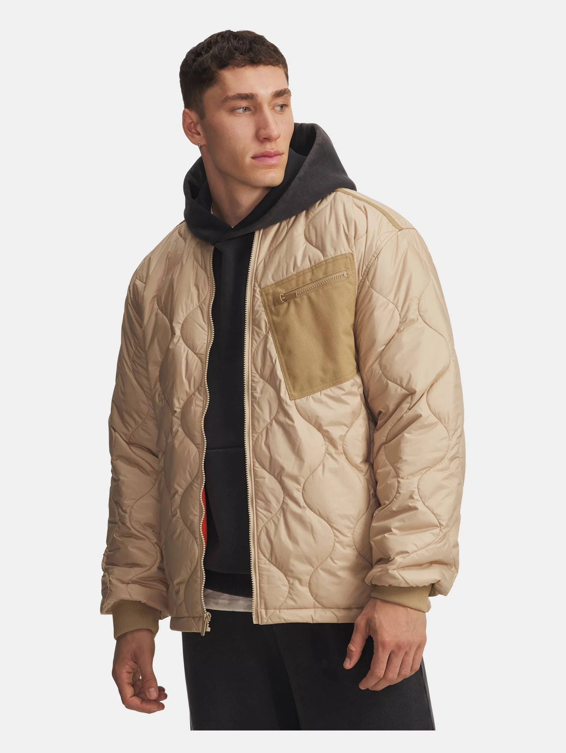 This jacket gives you warmth without bulk, protection from the elements, and a classic, heritage look with an all-over quilted pattern. Product Details - UA Storm technology repels water without sacrificing breathability - Lightweight ripstop woven fabric with quilted pattern delivers superior comfort & durability - All-over 120g synthetic insulation for midweight warmth without any excess bulk - Ribbed collar & cuffs - Secure zip hand pockets & chest pocket - Main body fabric contains at least 90% recycled polyester, excluding trims & embellishments Size & Fit - Fuller cut for complete comfort. Space & Care - Style #: 6000522 - 100% Polyester - Imported