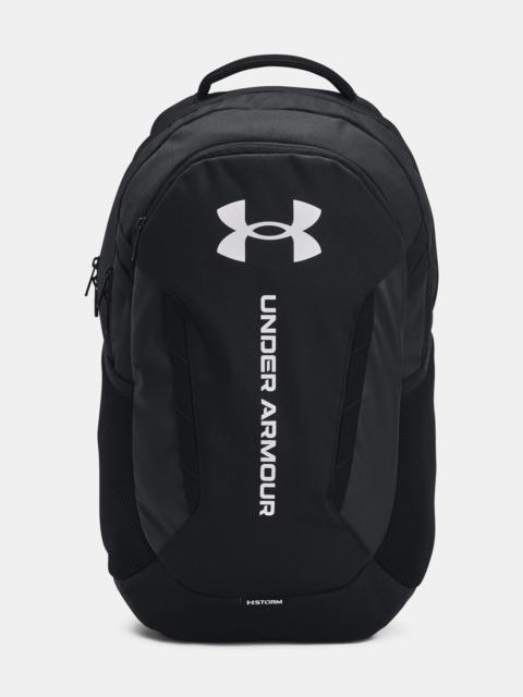 What's it do? This backpack does it all. It's water-repellent for the rain, tough as nails, comfortable as anything, and has all the pockets you need to hold all your stuff. Product DNA - Water-resistant UA Storm technology keeps your essentials dry - Soft-to-the-touch top coat on material for added durability - Soft-lined laptop sleeve—holds up to 16" MacBook Pro® or similarly sized laptop - Secondary compartment can be dual-purposed as a shoe/laundry pocket - Secure zip front pocket for essential item storage & side water bottle pocket that fits 32oz bottle - Molle webbing for additional attachment points - Top grab handle - One Size Fits Most - Style #: 1384672 - Dimensions When Full: 6.6"W x 20.1"H x 12.6"L - Volume: 29 L - 100% Polyester - Imported