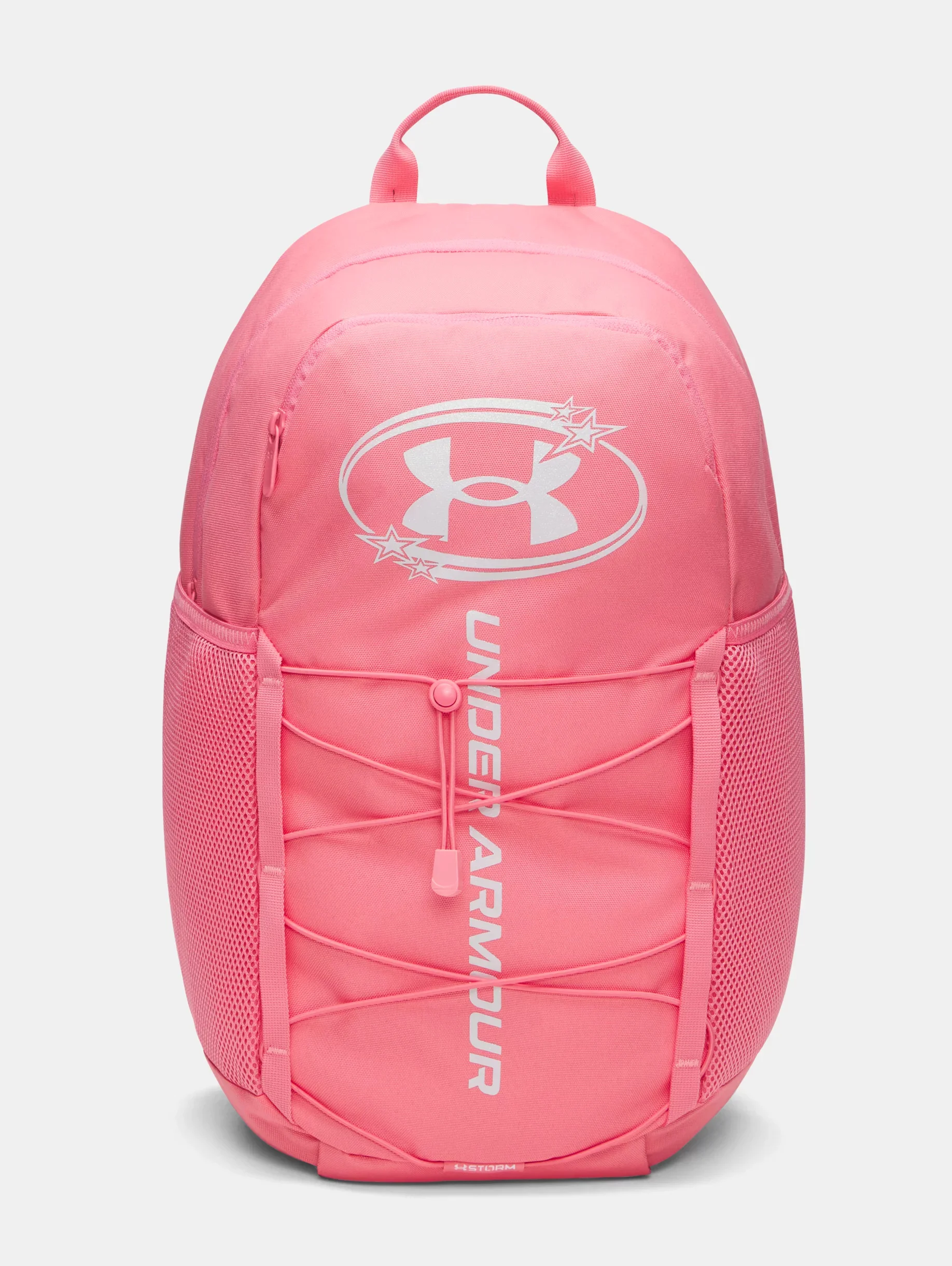 The Hustle 6.0 Sport Backpack is tough, light, and water-resistant, with a clean silhouette and sport-driven storage for clothes, shoes, tech, and everything else.At 26L it’s our most compact Hustle 6.0 backpack, while still holding up to a 16" MacBook Pro® or similarly sized computer in the padded laptop sleeve. The outer bungee system adds carrying capacity for extra gear when needed. Product Details - Water-resistant UA Storm technology keeps your essentials dry - Padded back panel & shaped straps make it more comfortable to carry - Soft-lined laptop sleeve with organization panel—holds up to 16" MacBook Pro® or similarly sized laptop - Front sleeve with bungee adjust closure for easily stashing a jacket, pair of shoes or ball - Large, zippered front valuables pocket - Durable, abrasion-resistant coated bottom - 2 side water bottle pockets fits up to 32 oz bottle - Uses a fluorine-free water repellent treatment Size & Fit - One Size Fits Most Space & Care - Style #: 6000397 - Top grab handle - Dimensions When Full: 12.6"H x 7.4"W x 18.5"D - Volume: 26L - 100% Polyester - Imported