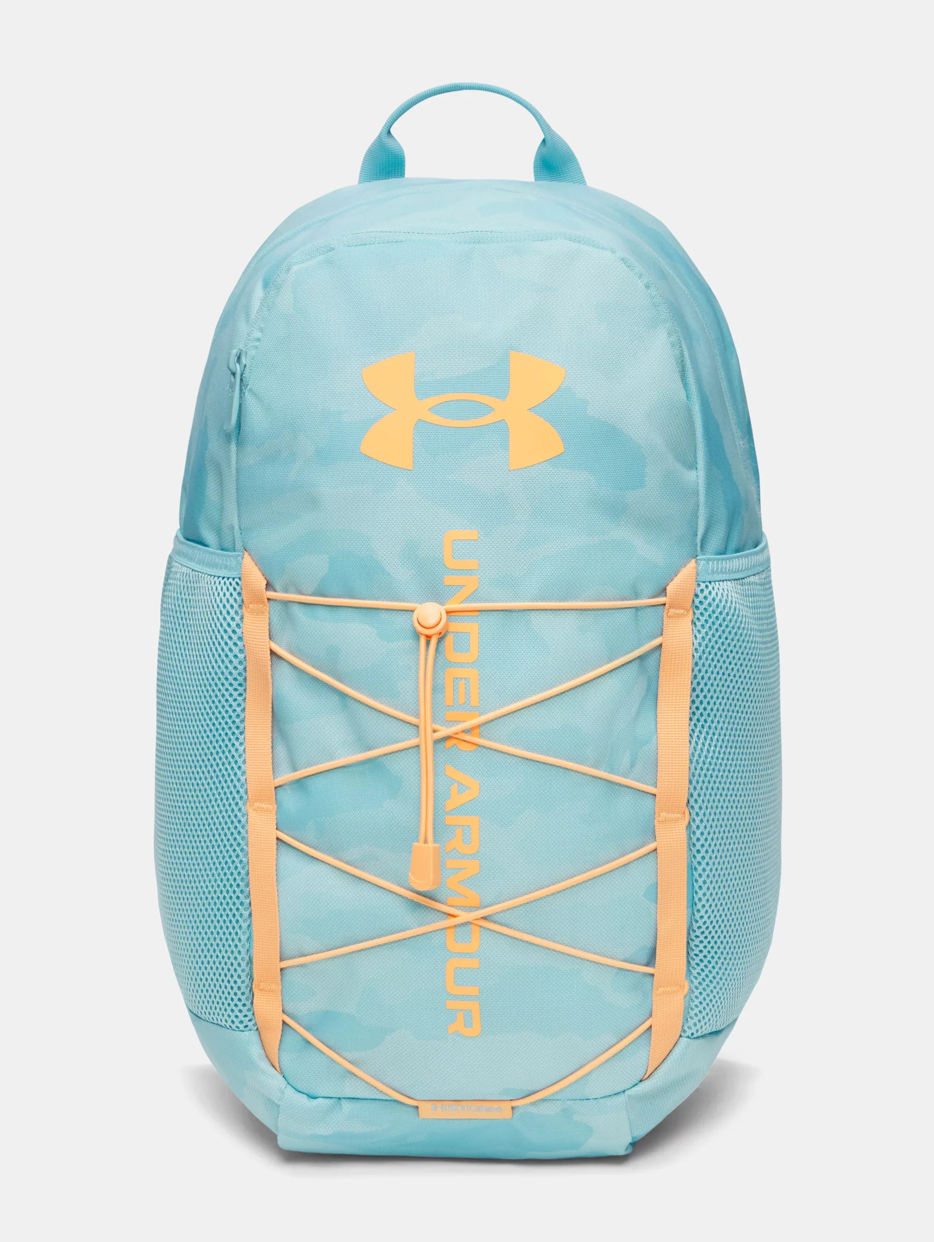 The Hustle 6.0 Sport Backpack is tough, light, and water-resistant, with a clean silhouette and sport-driven storage for clothes, shoes, tech, and everything else.At 26L it’s our most compact Hustle 6.0 backpack, while still holding up to a 16" MacBook Pro® or similarly sized computer in the padded laptop sleeve. The outer bungee system adds carrying capacity for extra gear when needed. Product Details - Water-resistant UA Storm technology keeps your essentials dry - Padded back panel & shaped straps make it more comfortable to carry - Soft-lined laptop sleeve with organization panel—holds up to 16" MacBook Pro® or similarly sized laptop - Front sleeve with bungee adjust closure for easily stashing a jacket, pair of shoes or ball - Large, zippered front valuables pocket - Durable, abrasion-resistant coated bottom - 2 side water bottle pockets fits up to 32 oz bottle - Uses a fluorine-free water repellent treatment Size & Fit - One Size Fits Most Space & Care - Style #: 6000397 - Top grab handle - Dimensions When Full: 12.6"H x 7.4"W x 18.5"D - Volume: 26L - 100% Polyester - Imported