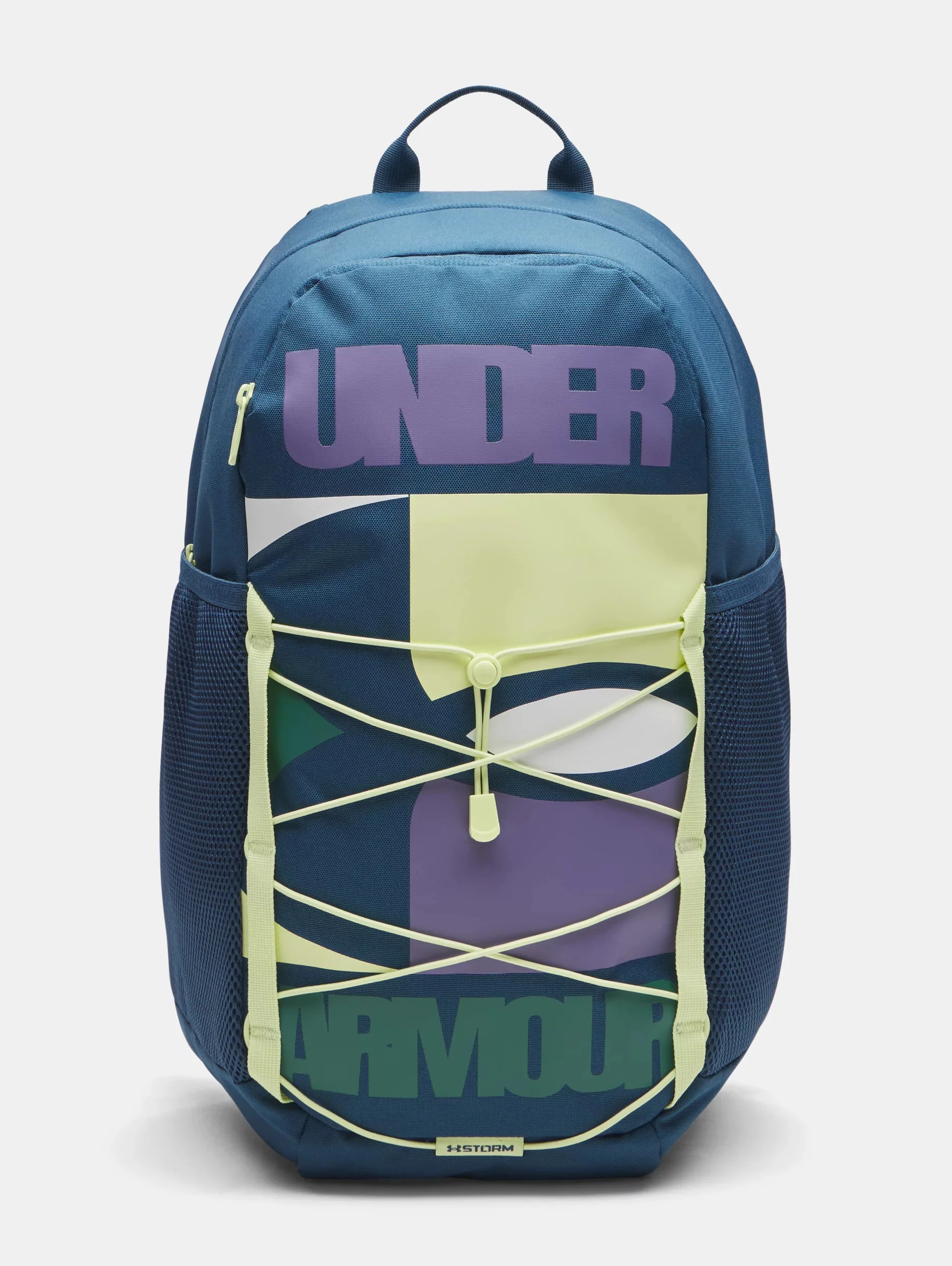 The Hustle 6.0 Sport Backpack is tough, light, and water-resistant, with a clean silhouette and sport-driven storage for clothes, shoes, tech, and everything else.At 26L it’s our most compact Hustle 6.0 backpack, while still holding up to a 16" MacBook Pro® or similarly sized computer in the padded laptop sleeve. The outer bungee system adds carrying capacity for extra gear when needed. Product Details - Water-resistant UA Storm technology keeps your essentials dry - Padded back panel & shaped straps make it more comfortable to carry - Soft-lined laptop sleeve with organization panel—holds up to 16" MacBook Pro® or similarly sized laptop - Front sleeve with bungee adjust closure for easily stashing a jacket, pair of shoes or ball - Large, zippered front valuables pocket - Durable, abrasion-resistant coated bottom - 2 side water bottle pockets fits up to 32 oz bottle - Uses a fluorine-free water repellent treatment Size & Fit - One Size Fits Most Space & Care - Style #: 6000397 - Top grab handle - Dimensions When Full: 12.6"H x 7.4"W x 18.5"D - Volume: 26L - 100% Polyester - Imported